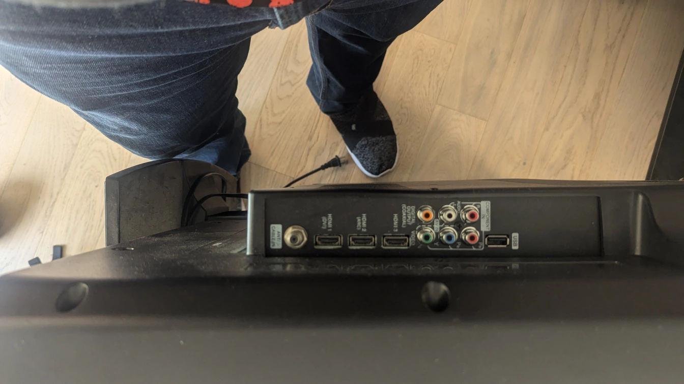 12 year old( I think) 3 HDMI slot with VGA plug ins. Remote control included in this top rated tv in its time. Cross posted because this has got to go.