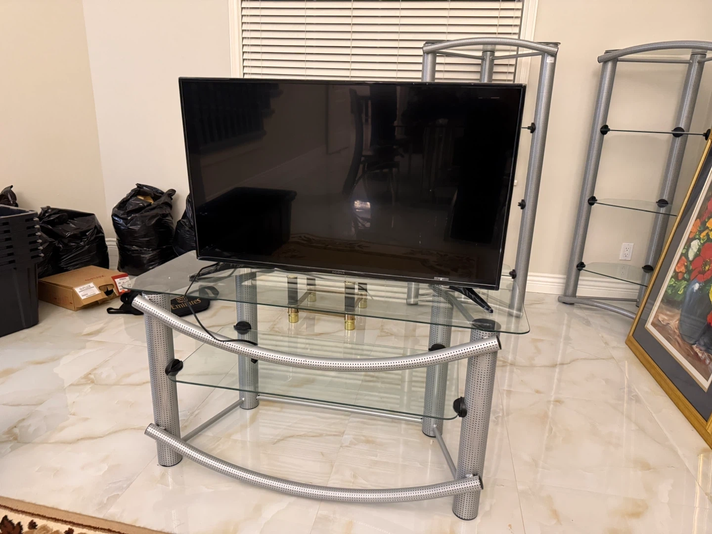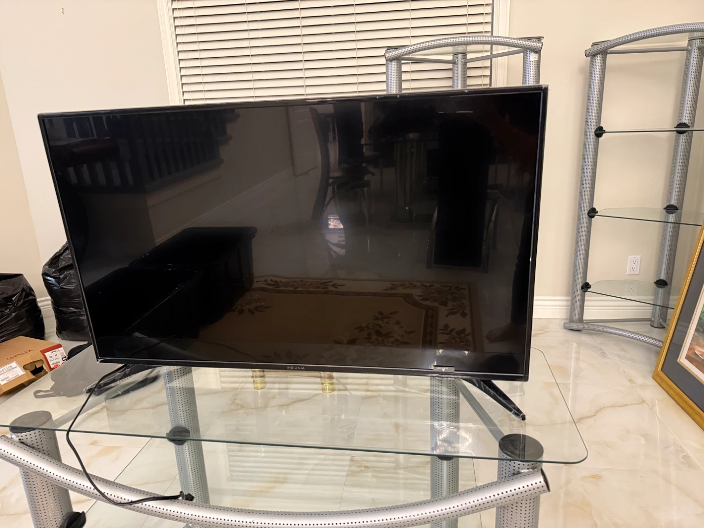 Selling an Insignia 43-inch LED TV. The model number is NS-43D420NA20. It's in great condition and ready for a new home! Made in China, manufactured in August 2020. Bought in 2022. Barely used. 4.5 stars from BestBuy from over 4800 reviews. https://www.bestbuy.com/product/insignia-43-class-n10-series-led-full-hd-tv/J2FPJKYJR4 TV: $100 Glass TV stand: $100 Both $180