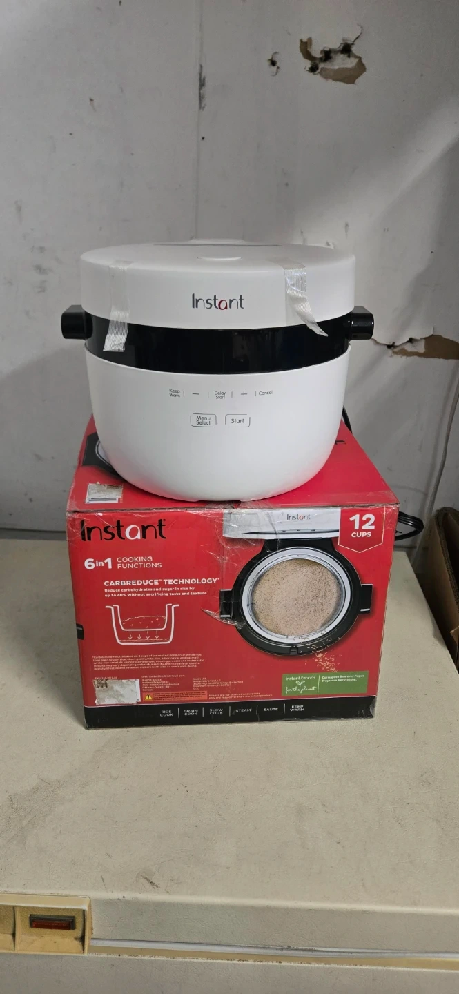 68Selling an Instant Rice and Grain Multi-Cooker with CarbReduce technology! It's a 6-in-1 cooker with cooking functions for rice, grain, steam, and sauté. This model has a 12-cup capacity and comes with accessories like a rice spoon and measuring cup. Keep warm to have great tasting rice anytime! Includes box