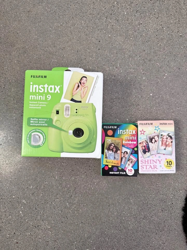 Get ready to start snapping instant memories right out of the box with this awesome Fujifilm Instax Mini 9 bundle! You are purchasing a brand new (still in the box!) Instax Mini 9 instant camera in a vibrant Lime Green color. This model is known for its ease of use and features a selfie mirror to help you frame the perfect self-portraits. But that's not all—this bundle comes with FOUR packs of Instax Mini Film! That's a total of 40 shots! Two packs are standard film, and two are special edition themed packs to add extra flair to your photos: • 1x Rainbow Film Pack (10 shots) • 1x Shiny Star Film Pack (10 shots) • 2x Standard Film Packs (10 shots each) This is the perfect gift for a friend, a teen, or anyone who loves the nostalgic charm of instant photography! The camera box was opened only to confirm the contents and take photos for this listing, and the camera itself is still protected by the bubble wrap inside (as shown).