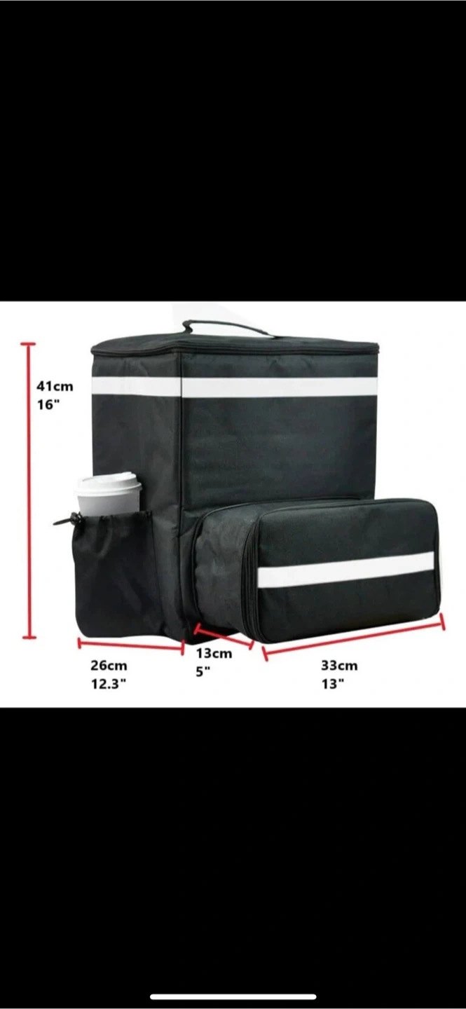 93Selling a black insulated food delivery bag. It's in great shape. I used it only once so it’s like new.