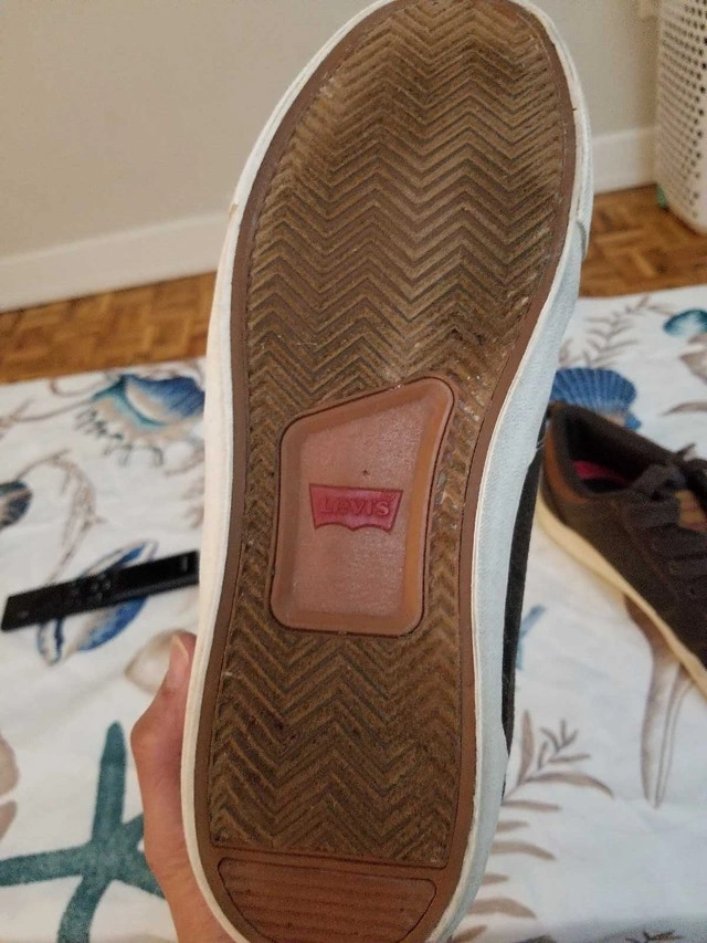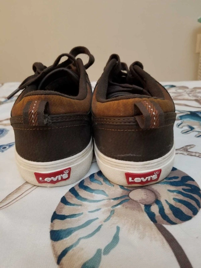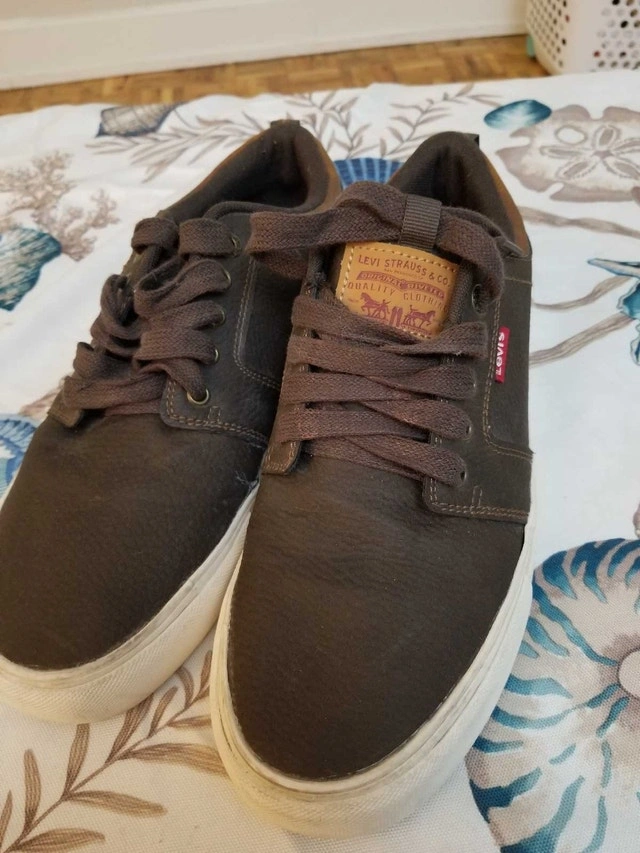 Step out in style with these men's Levi Strauss shoes, size 9.5, in a sleek brown colour. These used sneakers are in good condition, perfect for casual wear or adding a touch of cool to your everyday look. Features: - Brand: Levi Strauss - Size: 9.5 US - Colour: Brown - Style: Sneaker Looking to add some pep to your step? These shoes might just be the ticket! They've seen a few sidewalks, but they're ready for more adventures. P.S. If this ad is still up, yes, they're still available! OBO