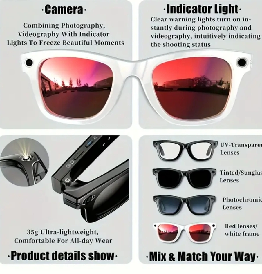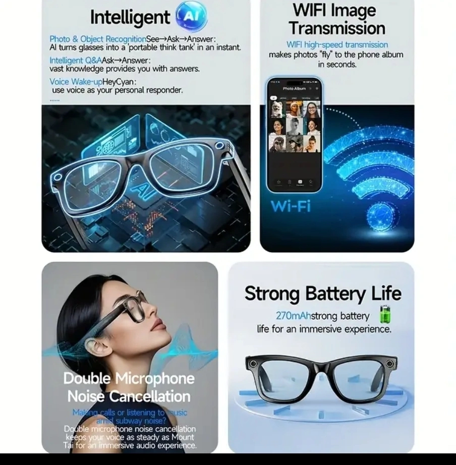 25Check out these Intelligent AI glasses! They feature a high-definition 800W camera (interpolated pixels 32MP) for photography and video recording. The glasses also have double microphone noise cancellation, making calls or listening to music a breeze. Plus, the strong battery life ensures an immersive experience. Real- time translation and object recognition built-in, hands free wireless calling, ultra-clear resolution shooting with 4K image quality. free shipping available. free gift π with every purchase you make from this page.
