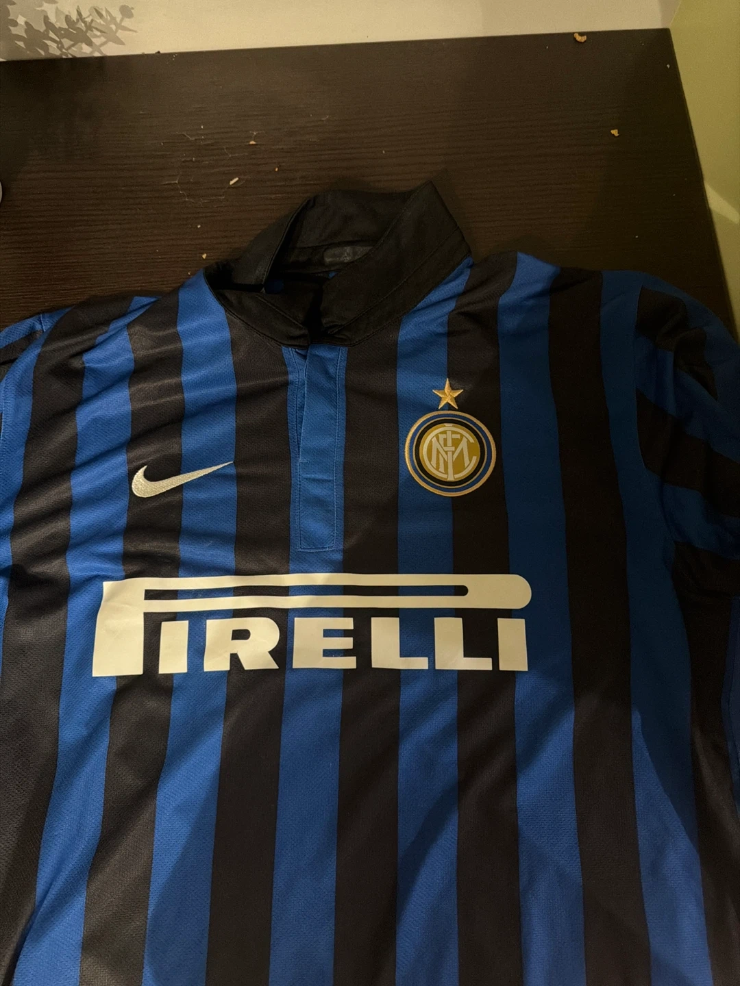 65Selling an Inter Milan football jersey featuring the iconic blue and black stripes! It has the Nike logo and the Pirelli sponsor logo on the front. Perfect for any football fan!
