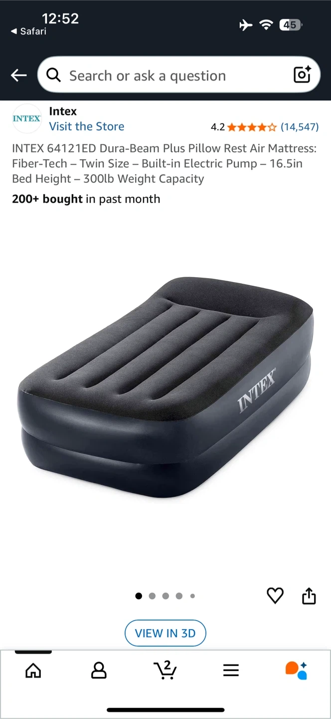 10Selling a brand new Intex Dura-Beam Plus Pillow Rest Raised Air Mattress in twin size! It's still in its original packaging. This air mattress features Fiber-Tech construction and a built-in electric pump. It can support up to 300 lbs and has a bed height of 16.5 inches. Perfect for guests or camping! # The price is for 2 of these, as you can see in photos.