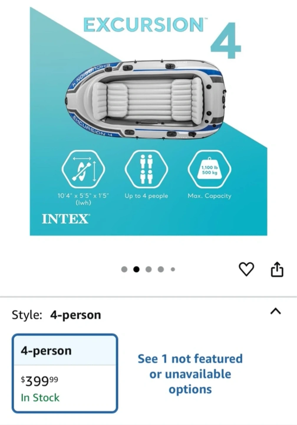 Selling an Intex Excursion 4 inflatable boat set, even perfect for fishing Originally bought for $399.99. Never used it but no cover. Cash and Pick up ONLY