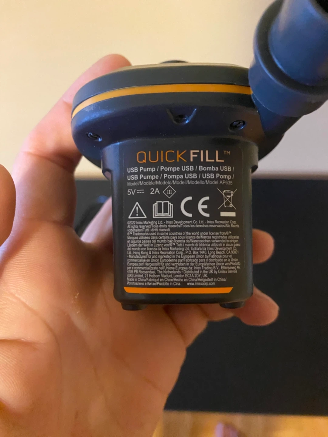Selling an Intex QuickFill USB Pump, model AP635. It's in great shape and ready to help you inflate your inflatables quickly and easily. It requires 5V 2A.