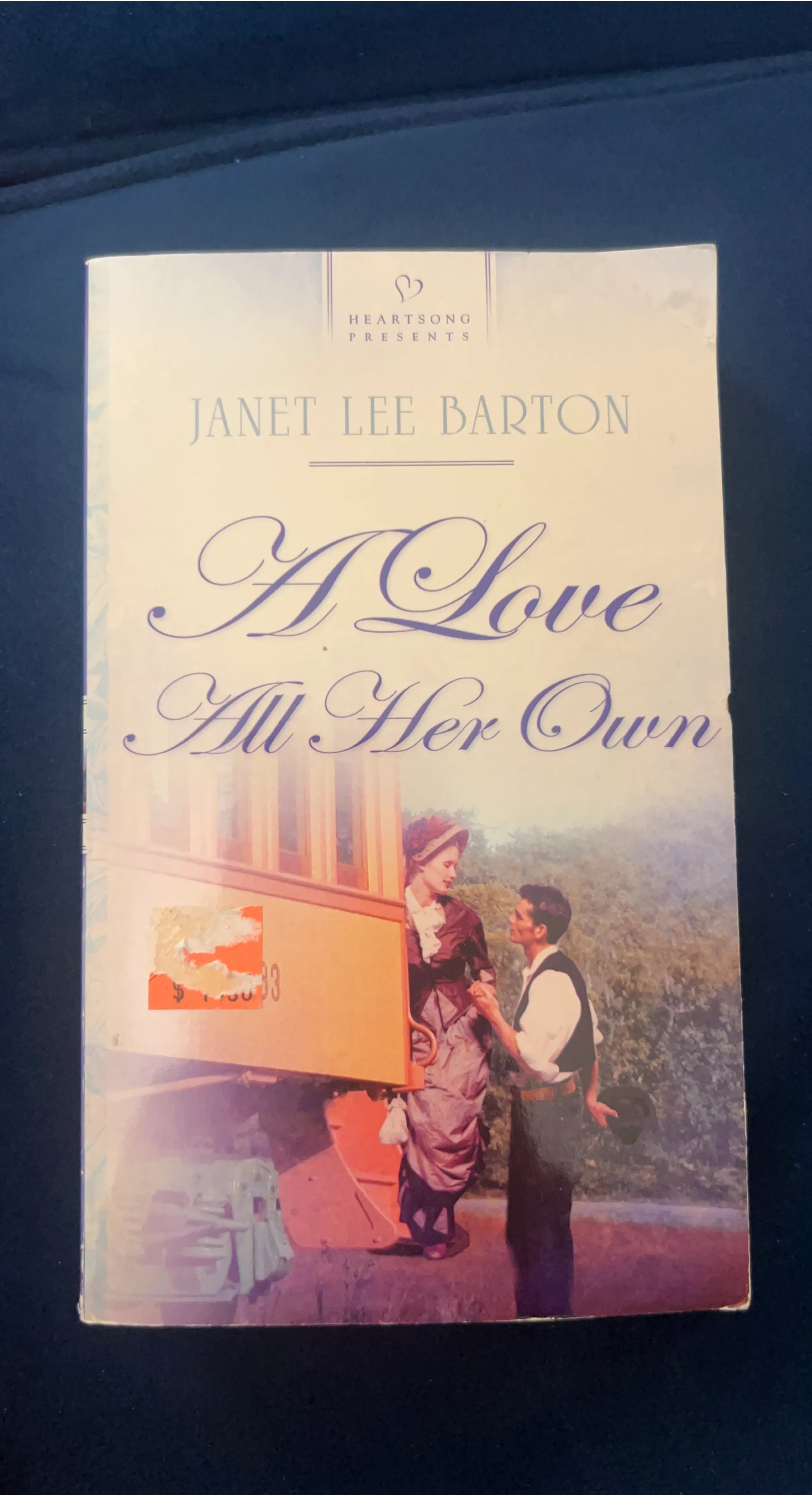 This is Janet Lee Barton's novel, "A Love All Her Own." It's part of the Heartsong Presents series. The book's cover depicts a historical scene with a couple. It's a great read for fans of historical romance.