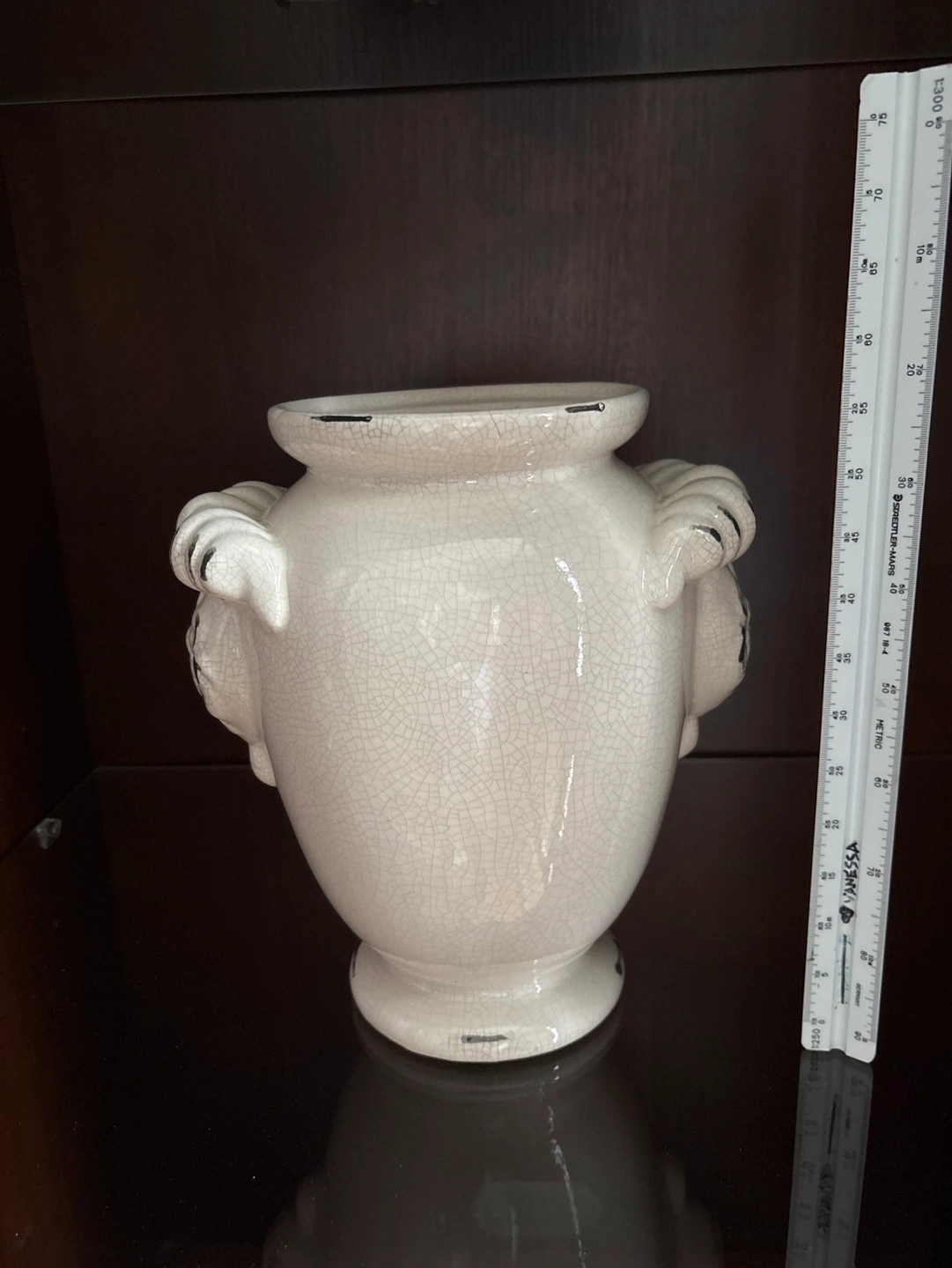 Cream Ceramic Vase with Ram's Head Detail