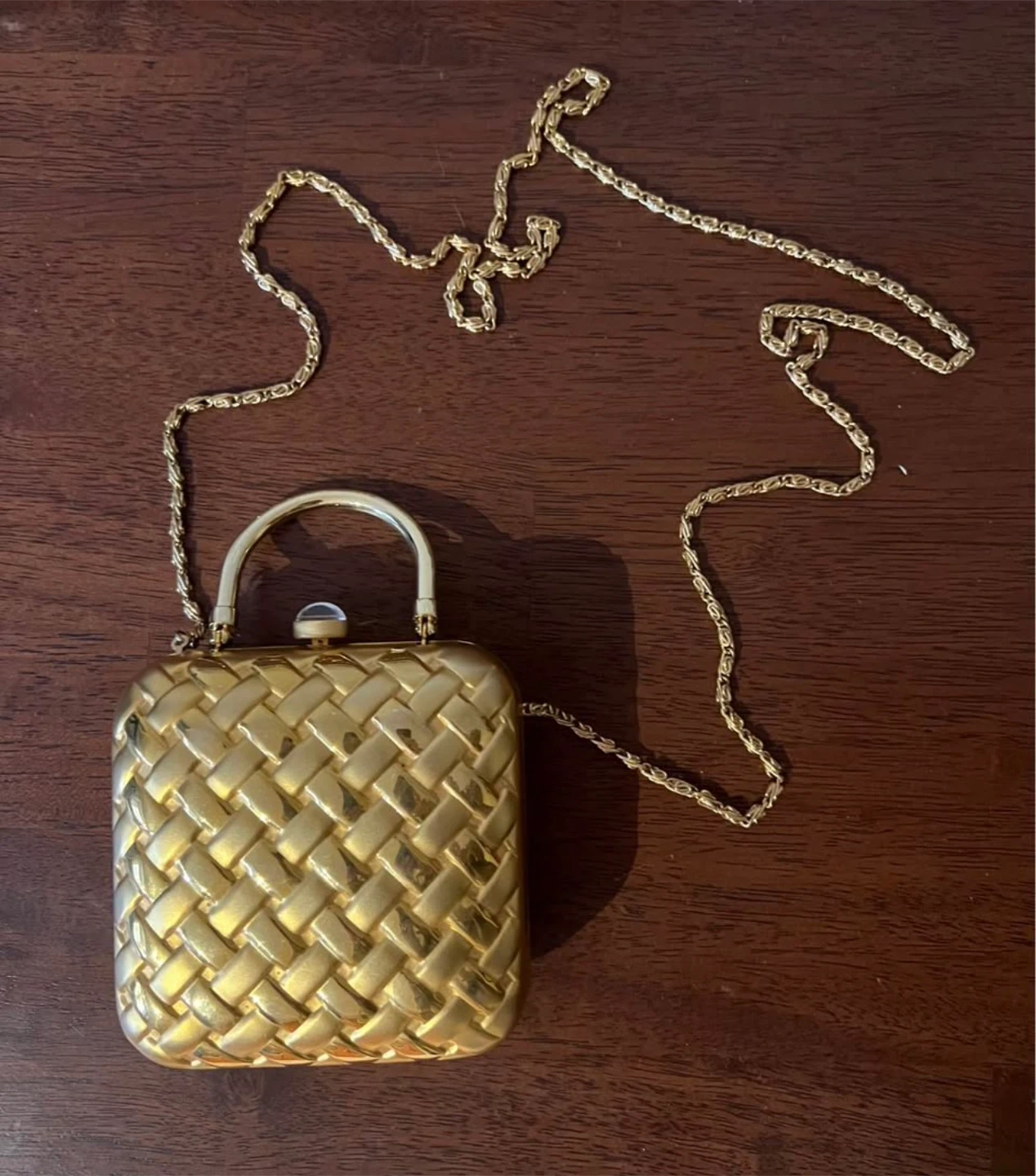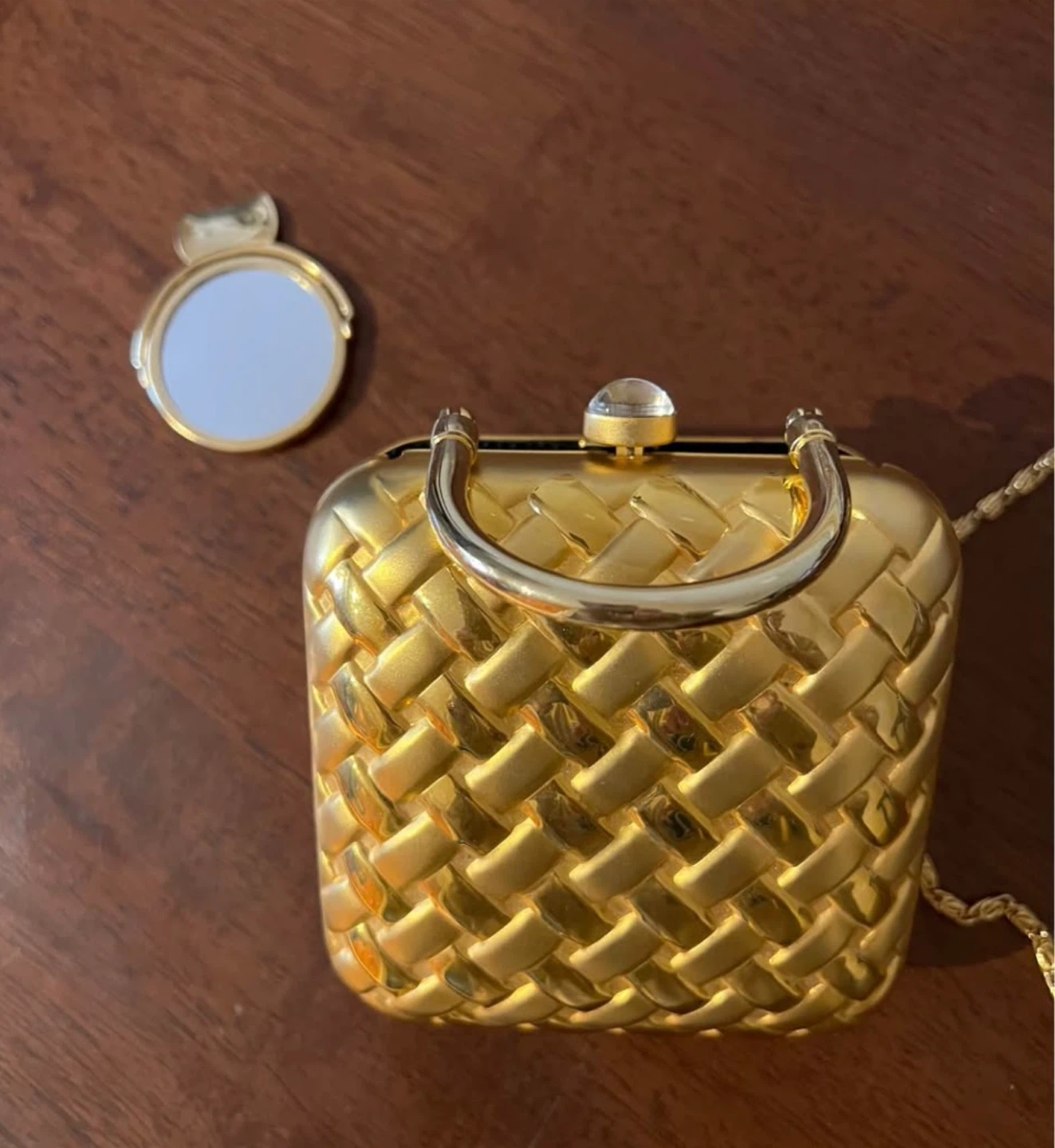 Buy & SellVintage Daniella Woven Look Metal BagVintage Daniella Woven Look Metal Bag$30Vintage Daniella metal bag can be used as a clutch, a shoulder bag, or can be carried with handle. Mirror included. Push lock w/crystal.WHERE TO MEETNear WalgreensView MapSELLERverifiedLauraCook County41129 reviews1 chats·0 favorites·13 viewsSEND CHAT TO SELLERHi Laura! I’m interested in your listing.Hi Laura! I’m interested in your listing.Get the Karrot app to chatSign In to chat