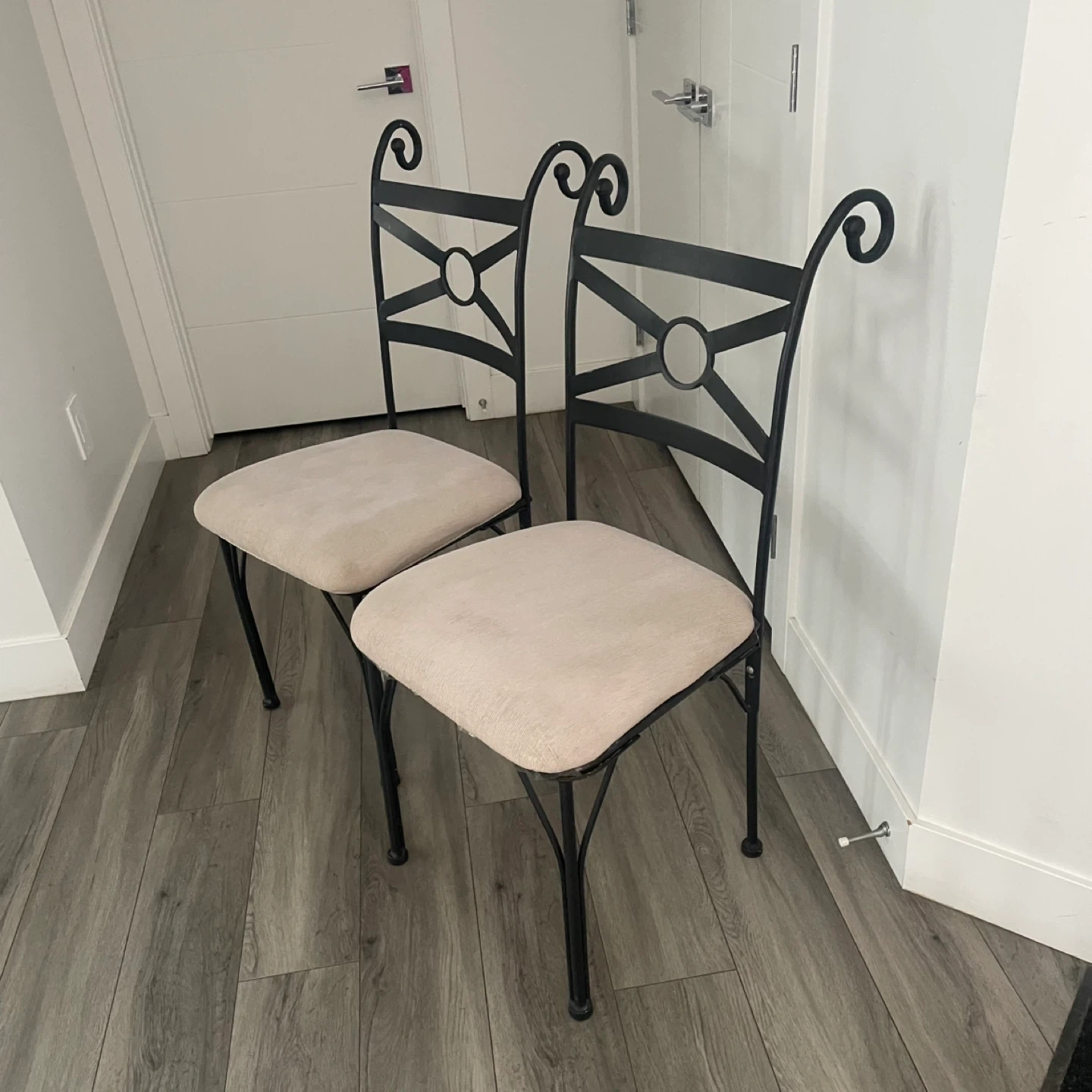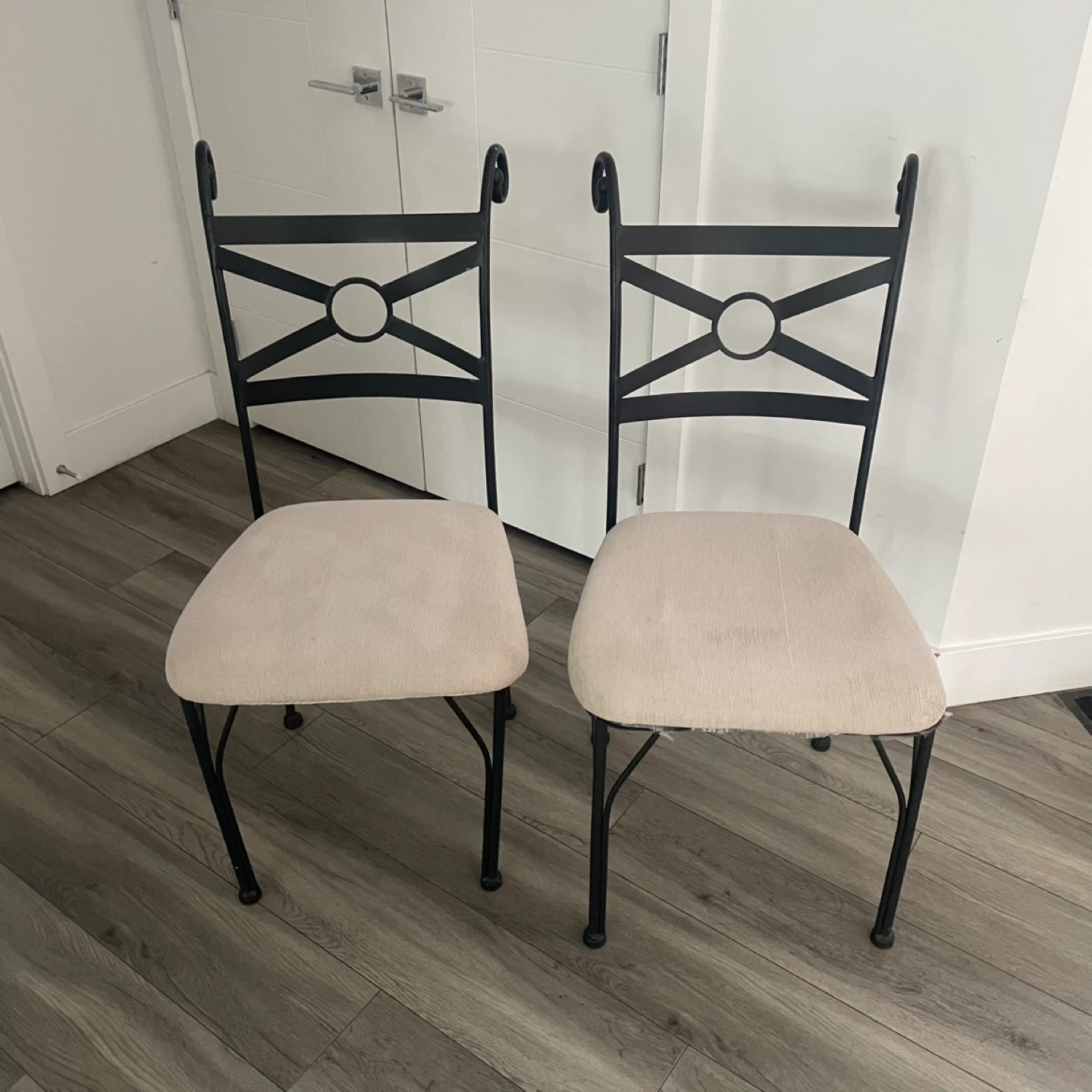 ($40 For All) Set of 2 Metal Dining Chairs.