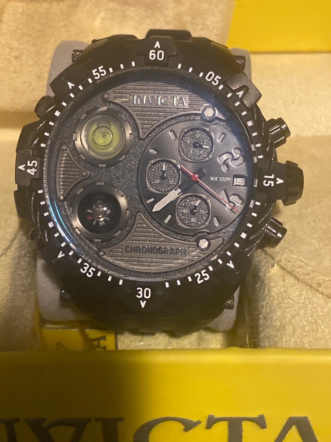 9Selling an Invicta Chronograph watch! It features a black design with chronograph details and is water resistant to 100m. A stylish and functional timepiece!