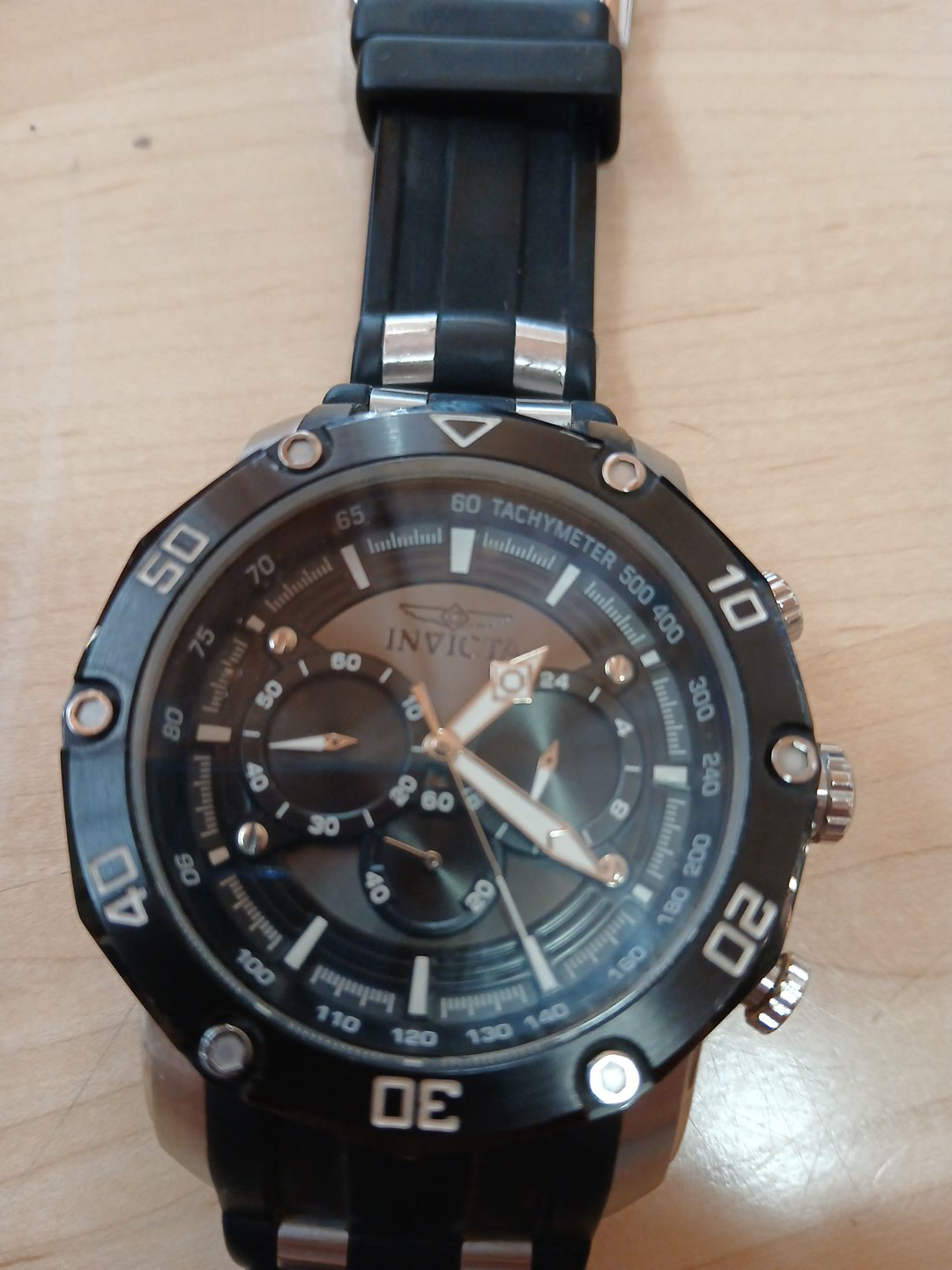 10Selling a used Invicta Pro Diver watch. It features a stainless steel case and a black rubber strap. The watch is water resistant to 100m. Model number is CD 28782.