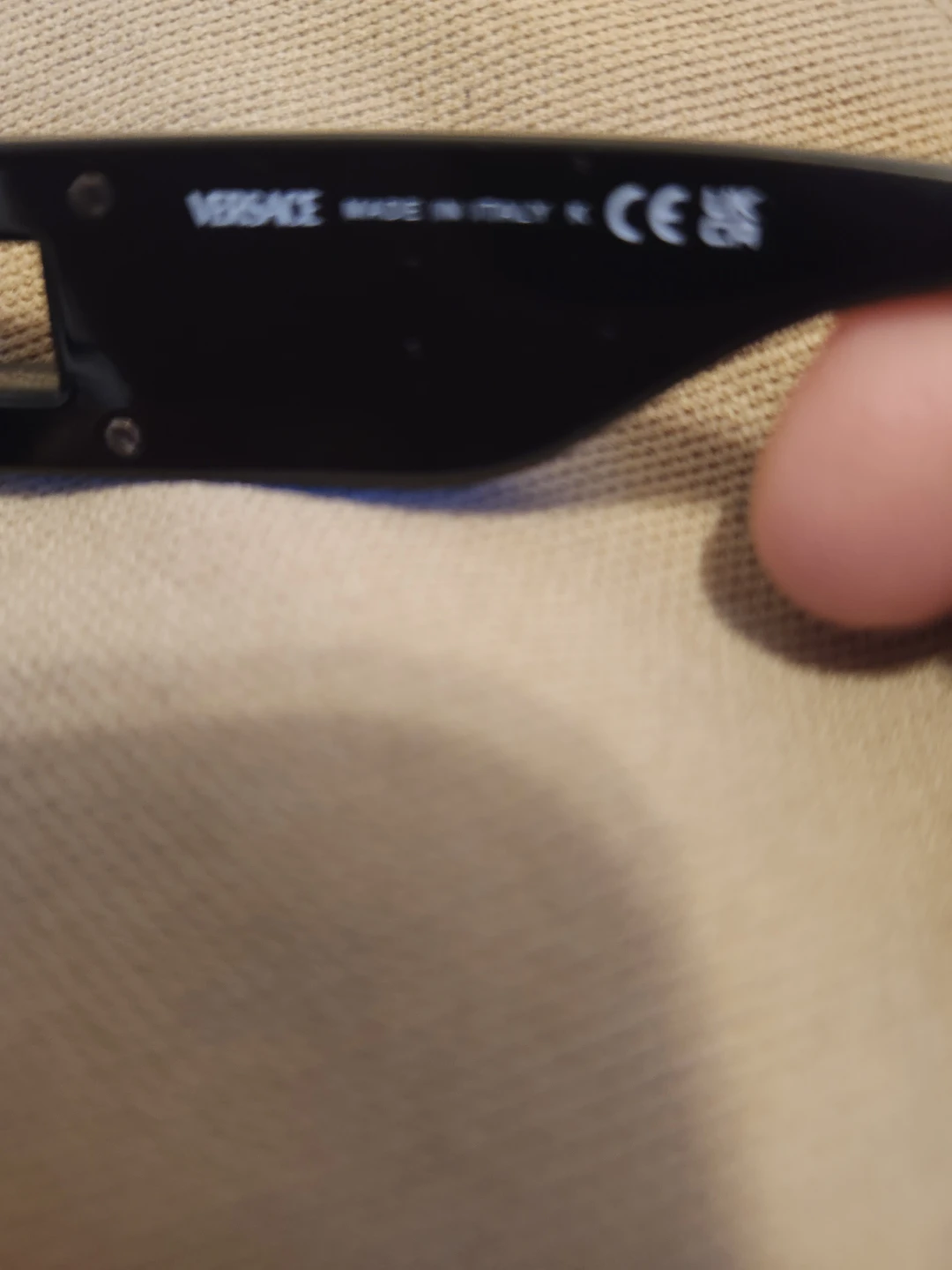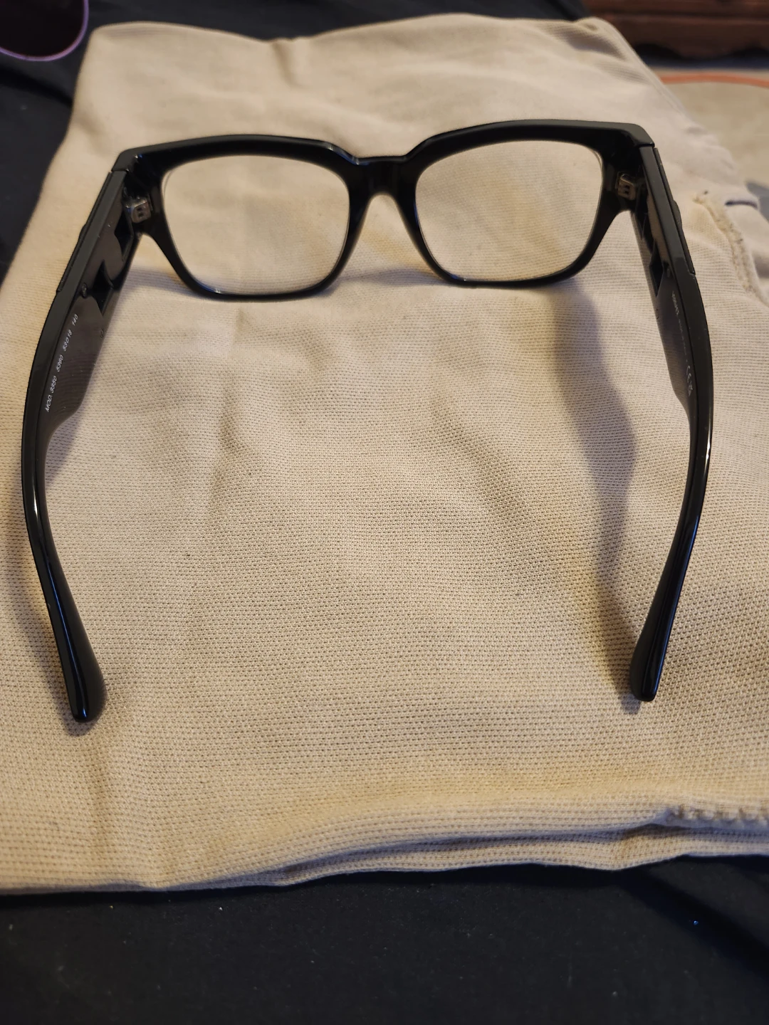 Versace eyeglasses with a black rectangular frame. Made in Italy. Frame measurements are 53mm for the lens width, 18mm for the bridge width, and 140mm for the temple length. These would be a stylish choice for anyone needing prescription lenses.