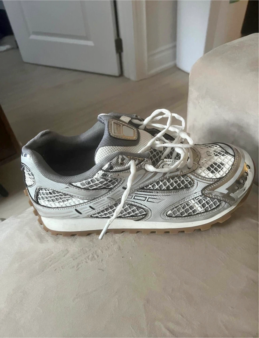 Buy & SellBottega Veneta White Silver Mesh Running ShoesBottega Veneta White Silver Mesh Running Shoes$280Bottega Veneta running shoes in white and silver. Mesh and leather upper. Rubber sole.Size42BrandBottega VenetaWHERE TO MEETEbenezer RoadView MapSELLERSamuelBram E100 reviews1 chats·1 favorites·44 viewsSEND CHAT TO SELLERHi Samuel! I’m interested in your listing.Hi Samuel! I’m interested in your listing.Get the Karrot app to chatSign In to chat