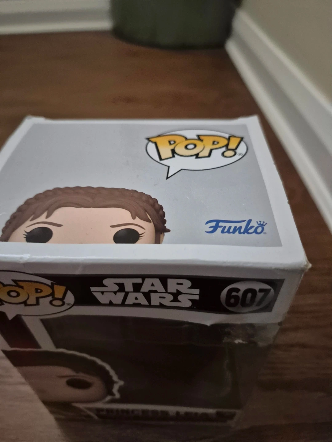 This is a Funko Pop! Star Wars Princess Leia bobble-head figure, number 607. It's in its original packaging. This collectible is a great addition for any Star Wars fan!