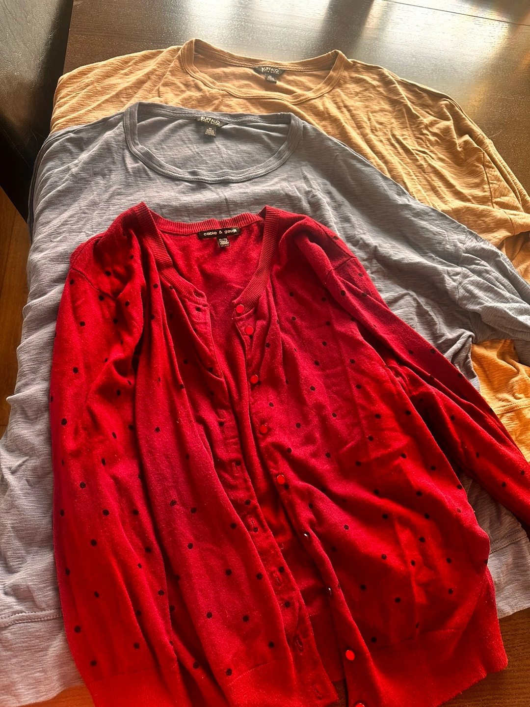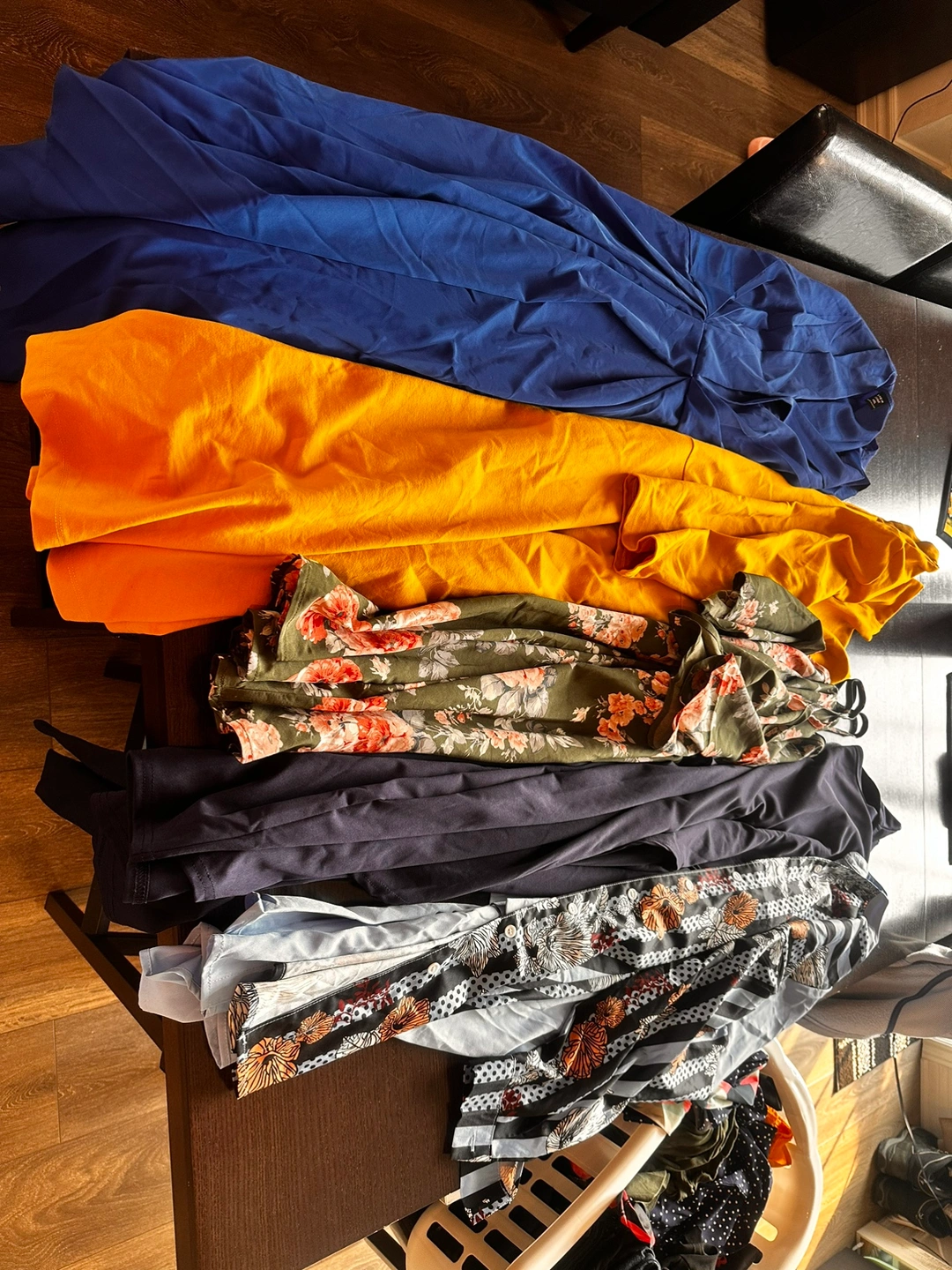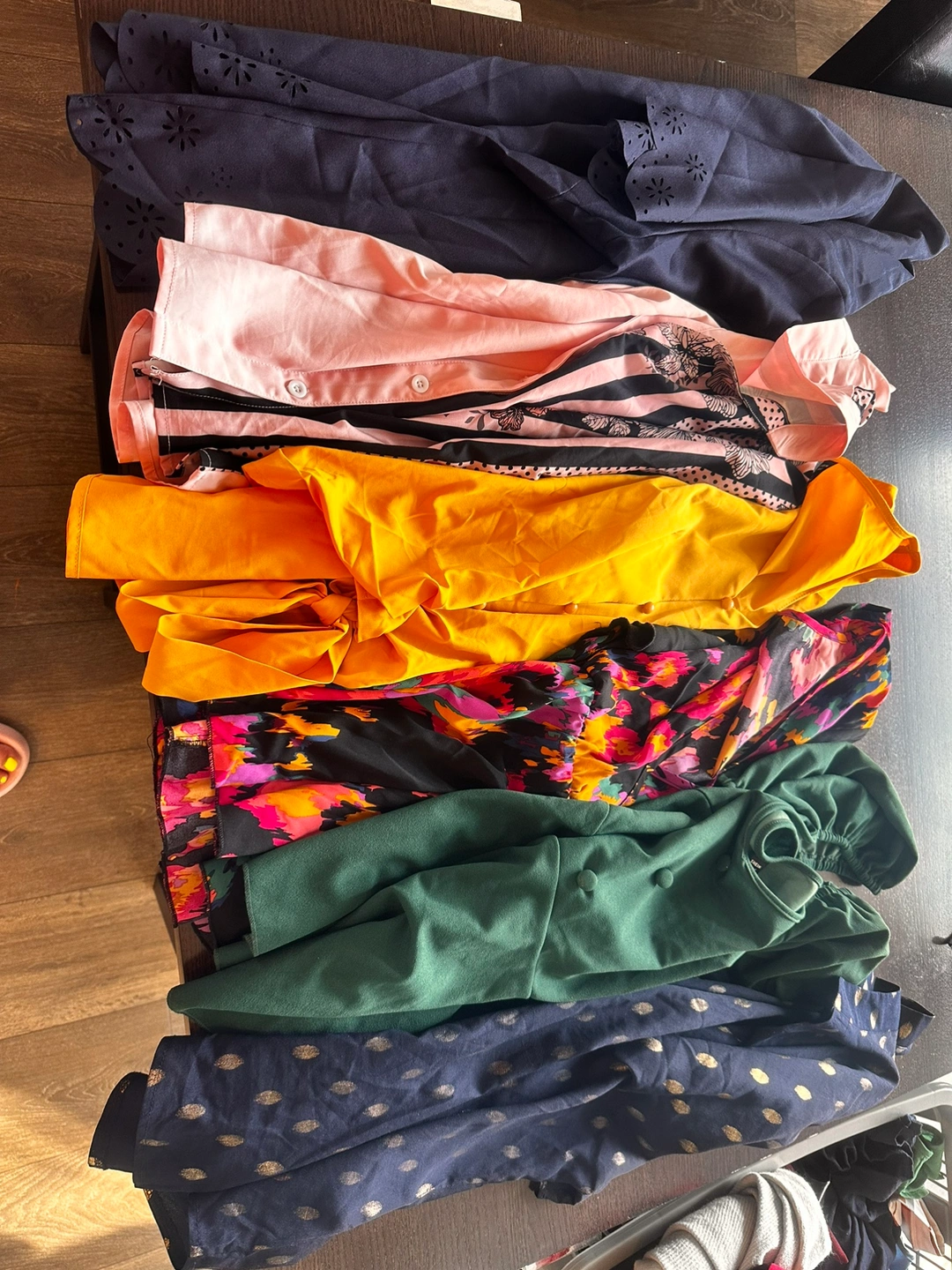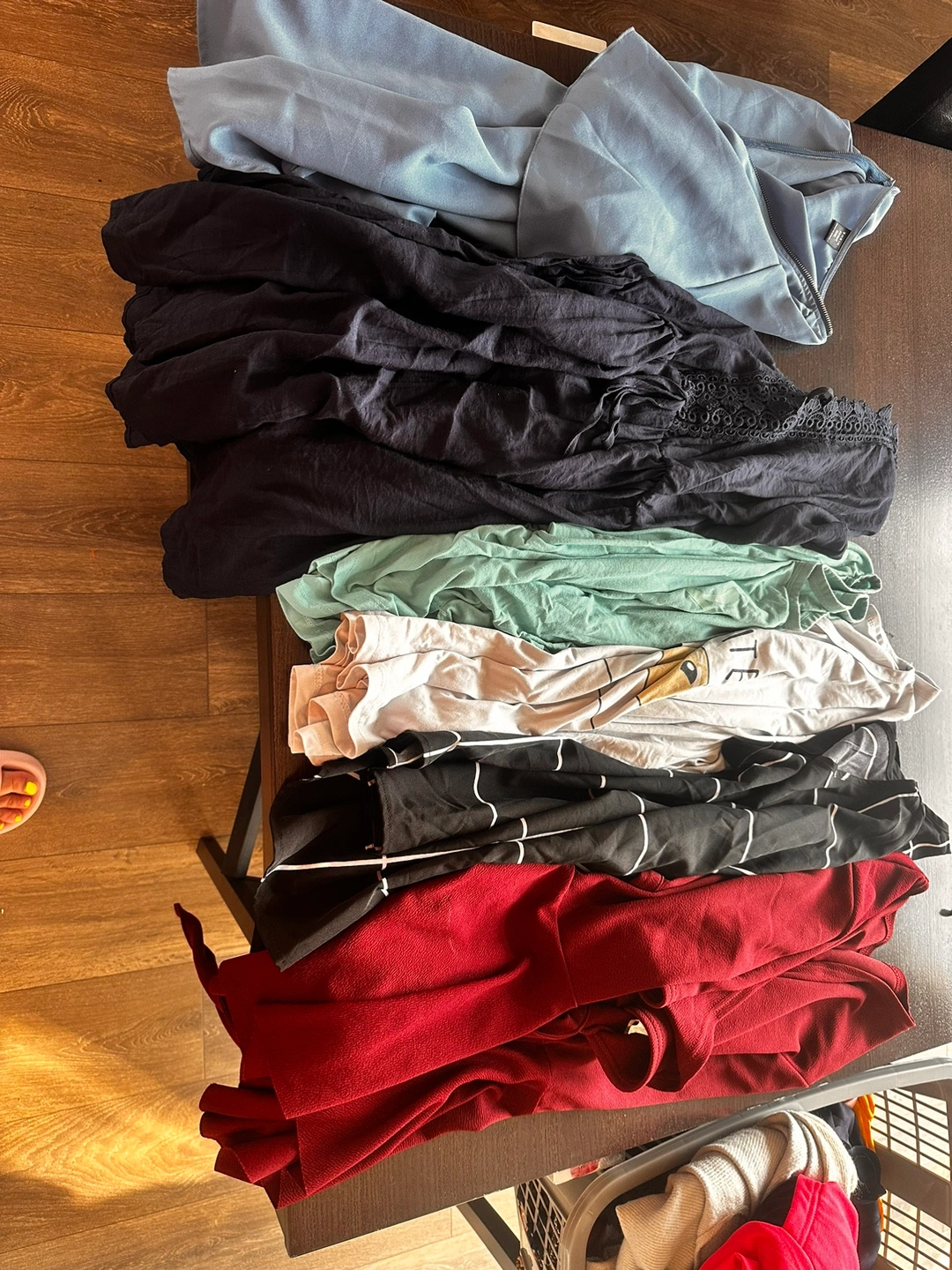 This bundle include 19 dresses, 12 sweaters/blouses/long sleeve shirts, 17 tshirts, 2 tank tops.