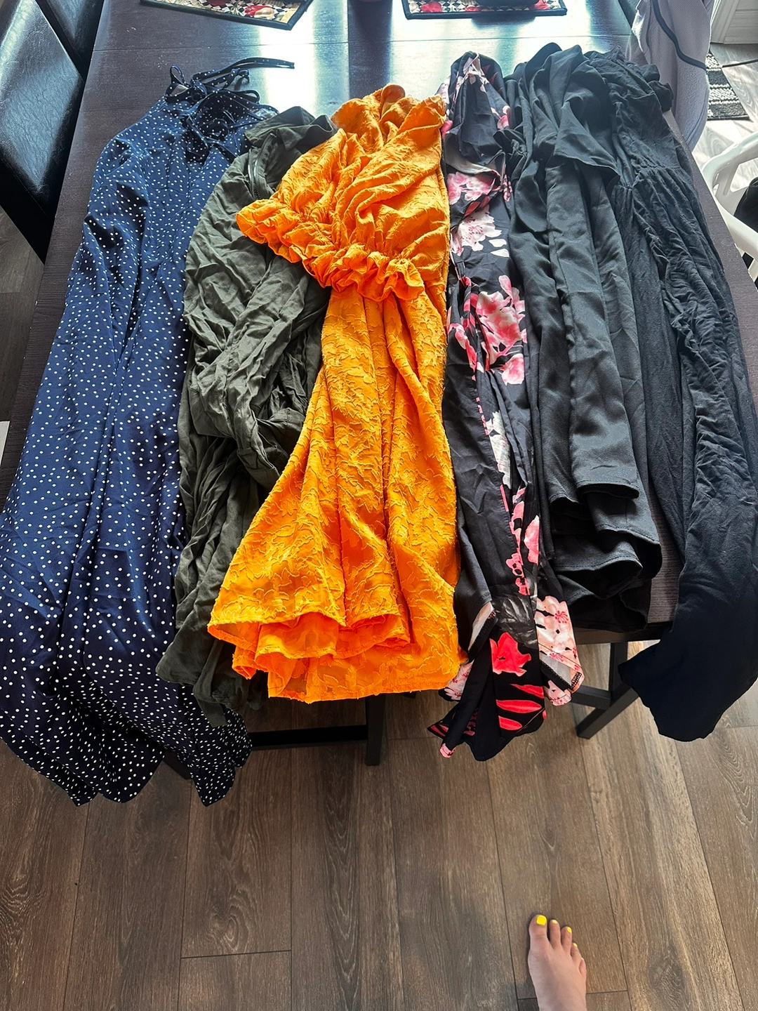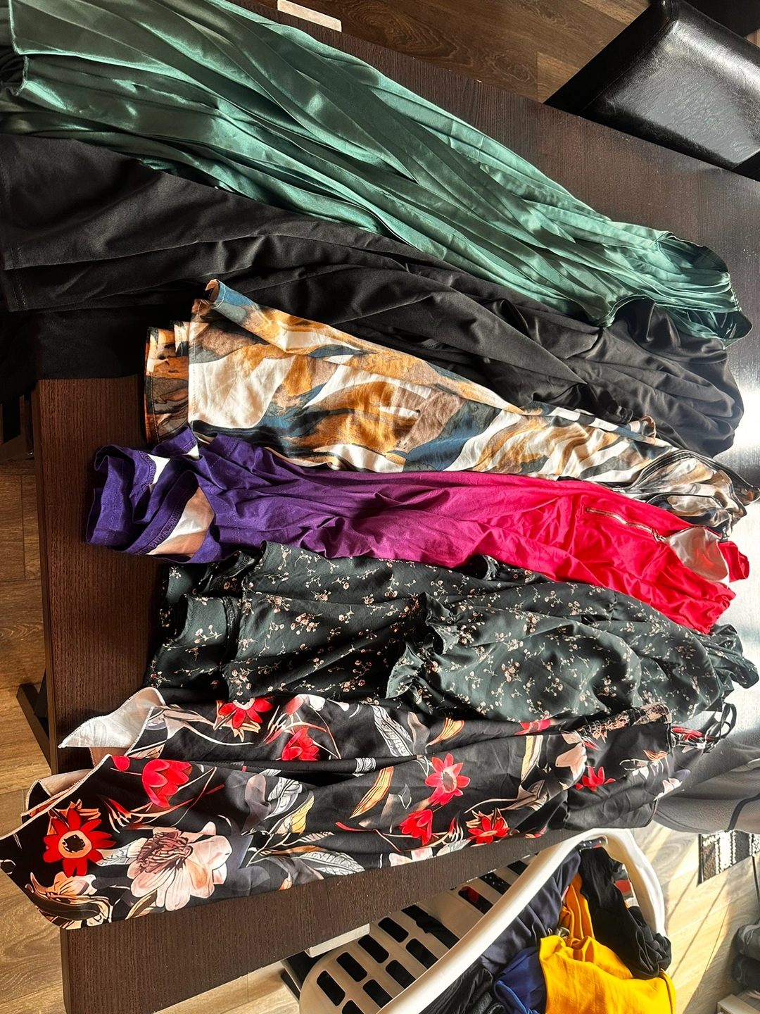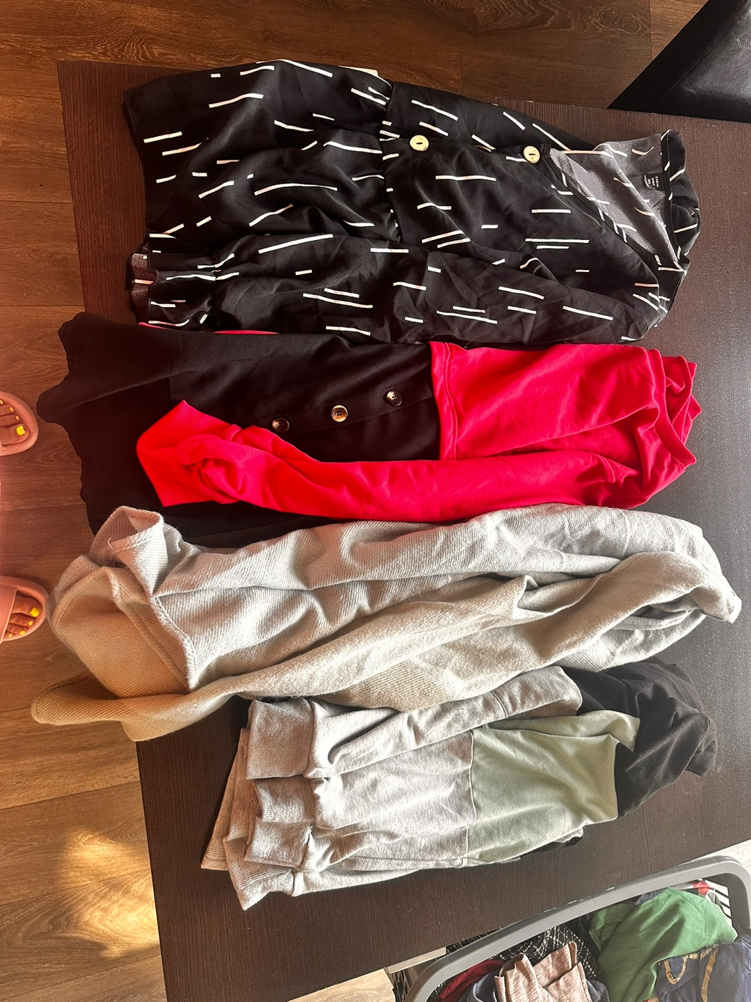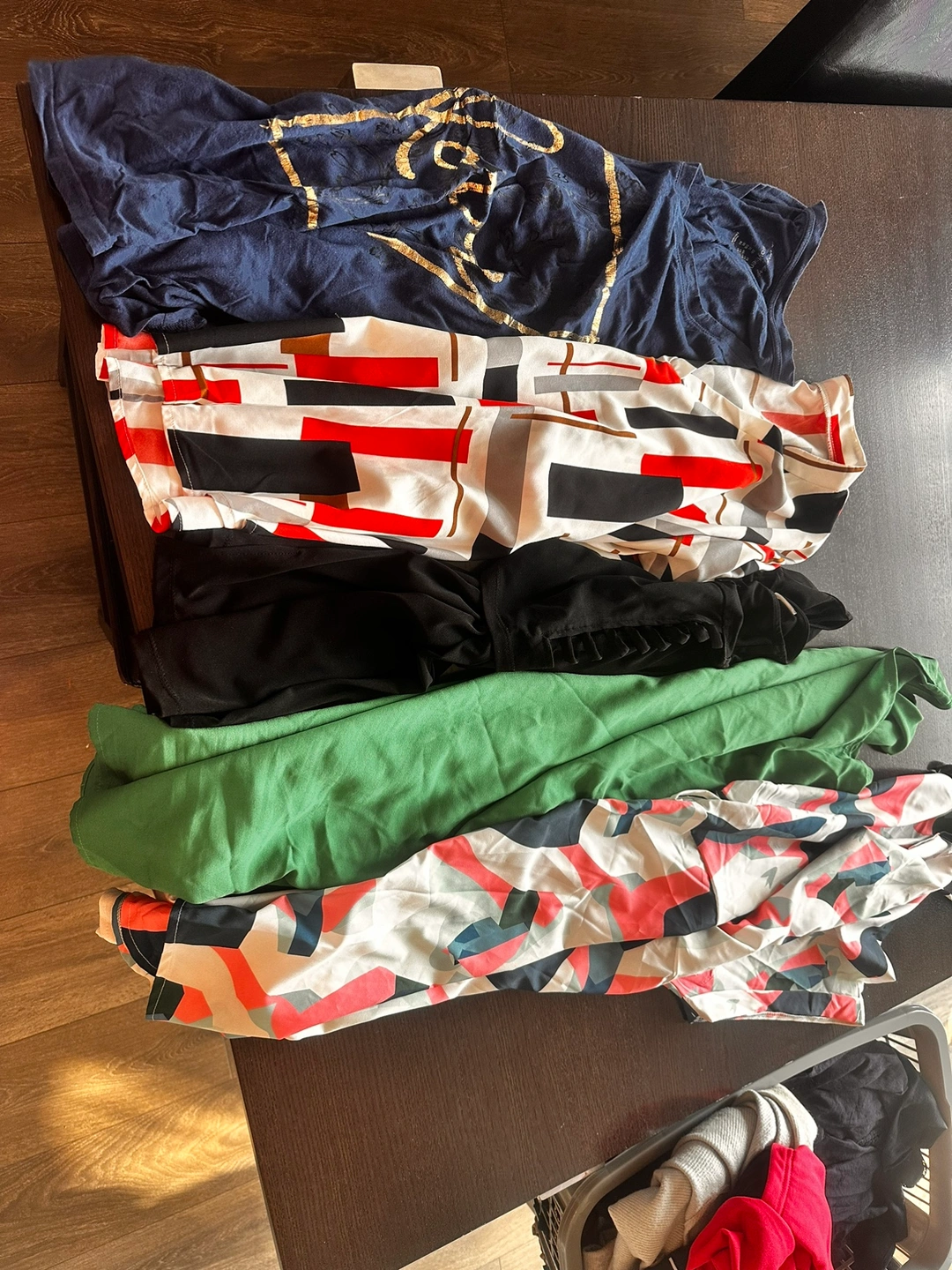 This bundle include 19 dresses, 12 sweaters/blouses/long sleeve shirts, 17 tshirts, 2 tank tops.