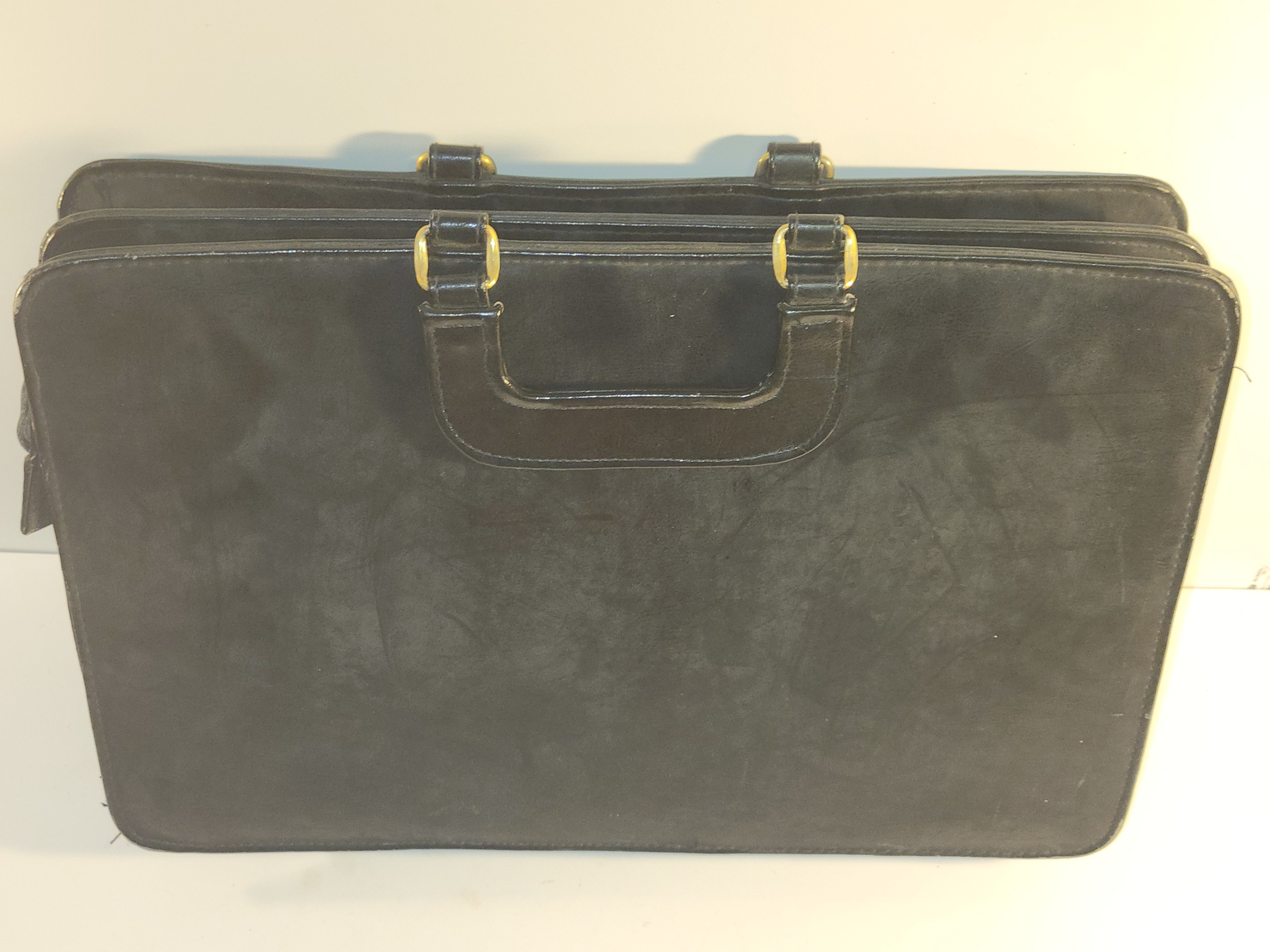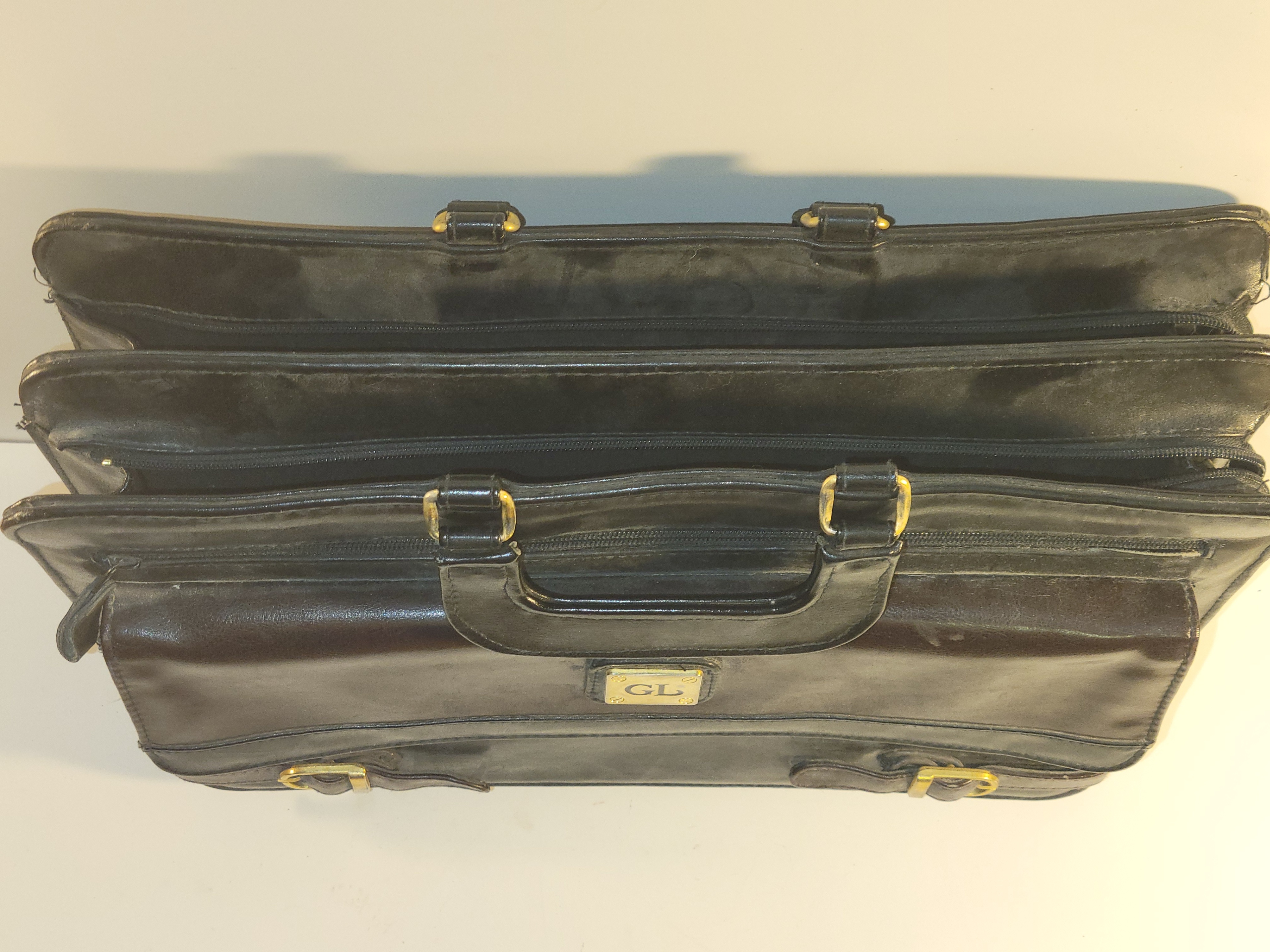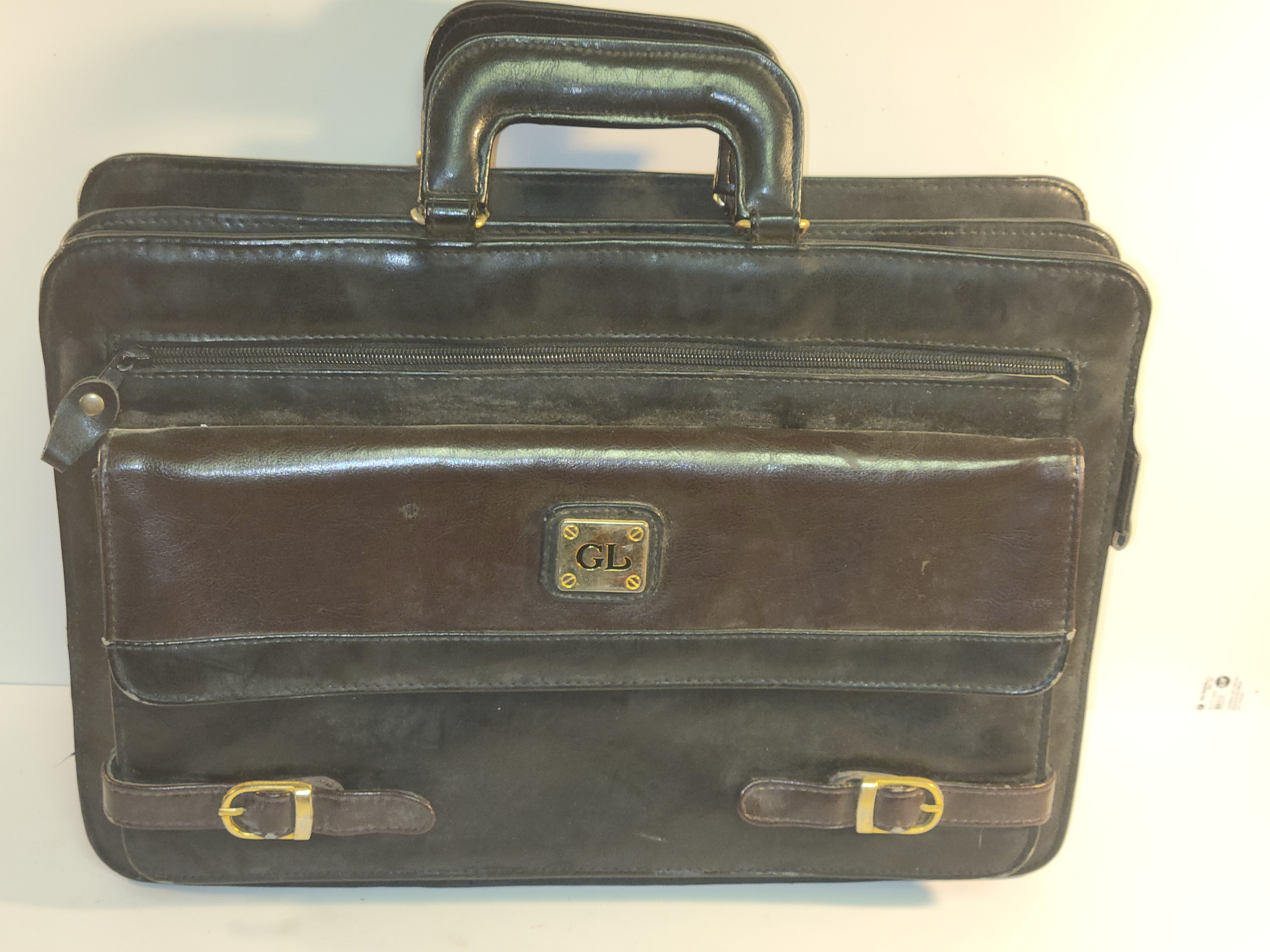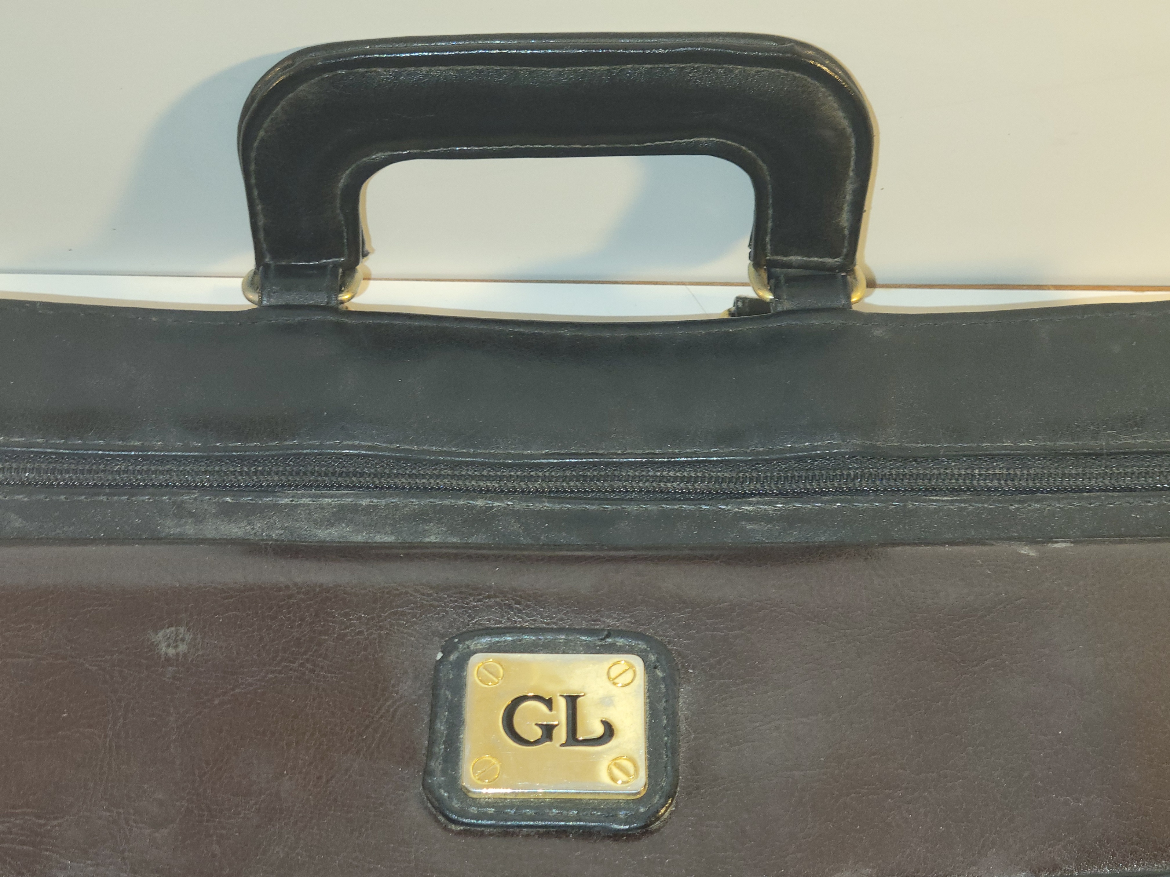 GL Black Leather with Brown trim Laptop Bag with Carry Handle **