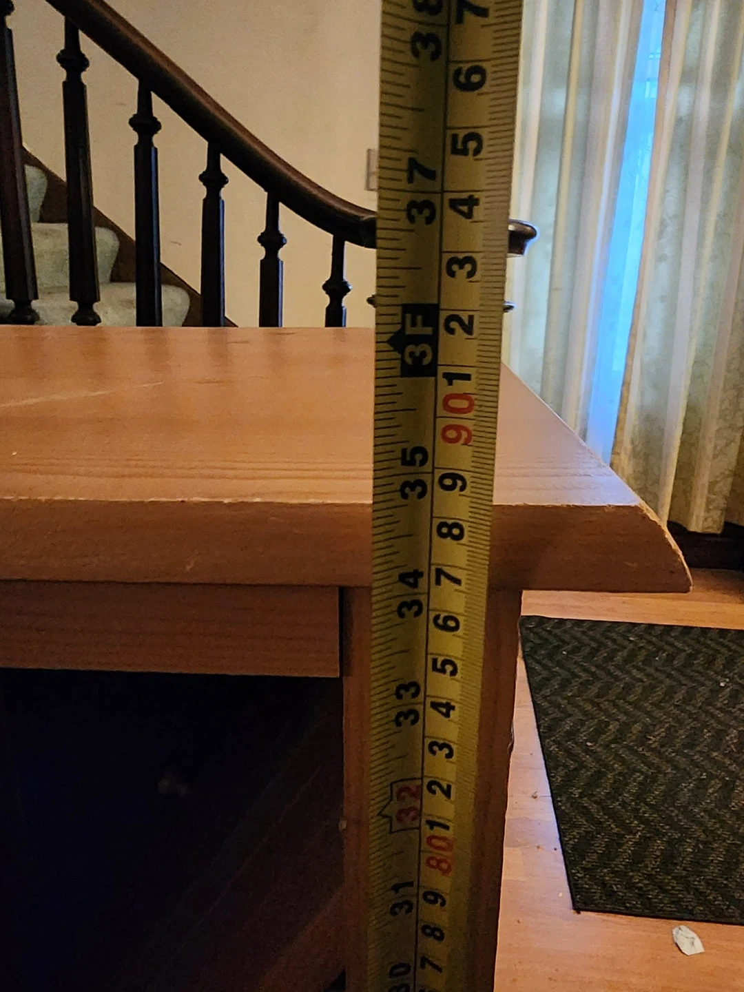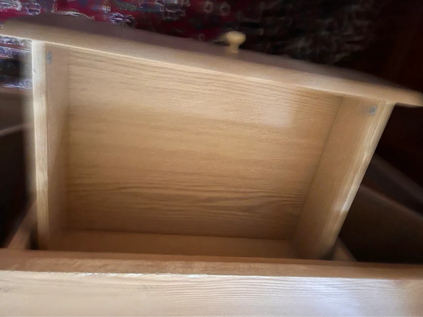 This wooden sideboard offers ample storage with its four drawers and two cabinets. It's made of light-colored wood with wooden knob handles. The cabinet doors have slatted inserts.