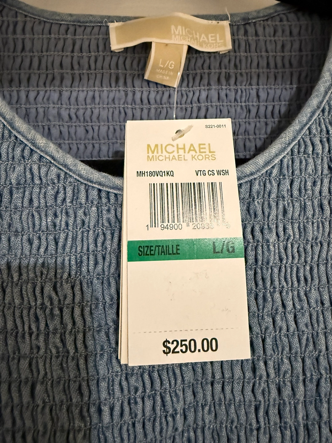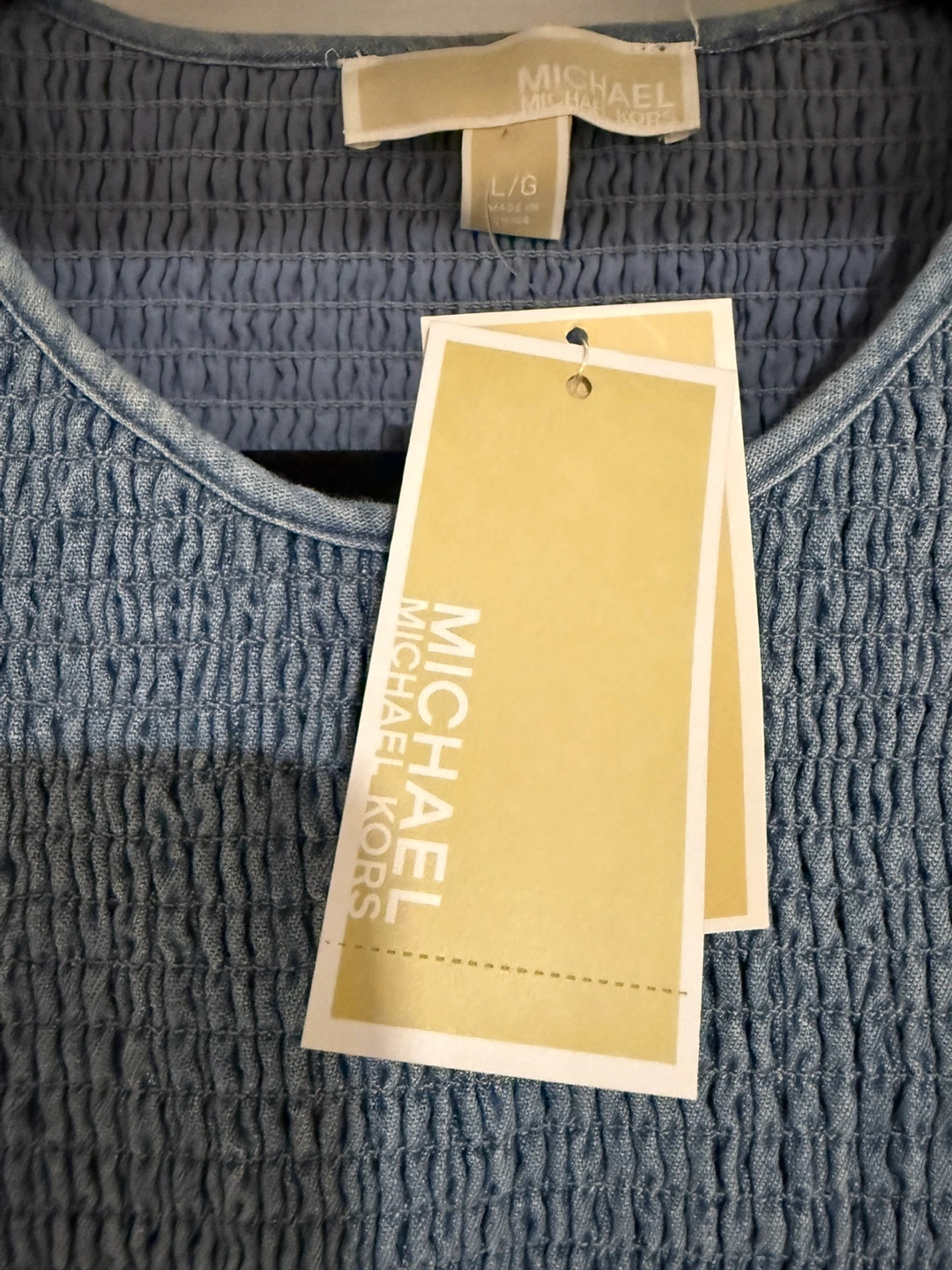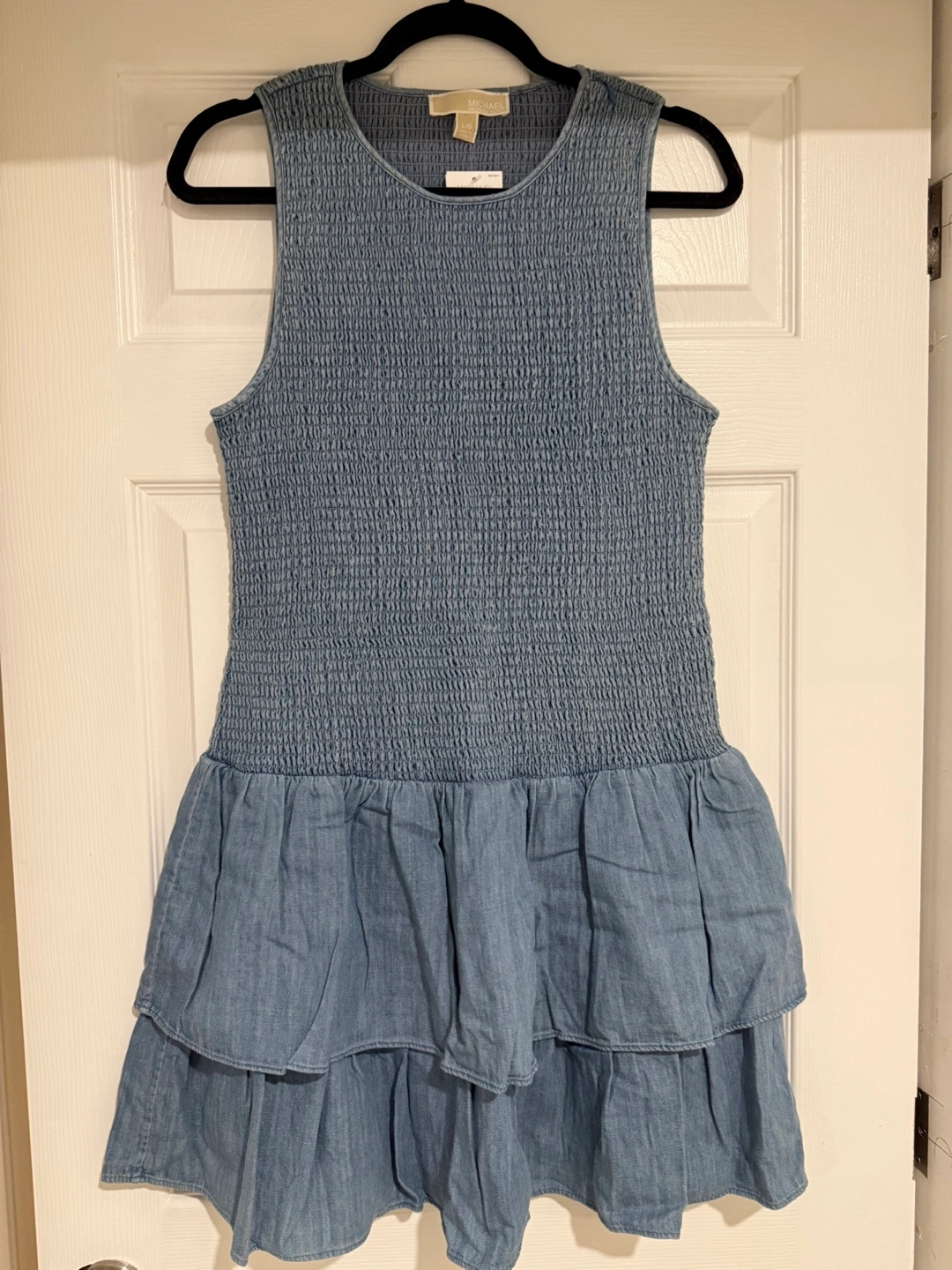 Selling a very stylish Michael Kors dress in size Large. It's a lovely light blue colour with a tiered ruffle skirt. The top is smocked for a comfortable fit. Originally bought for $250