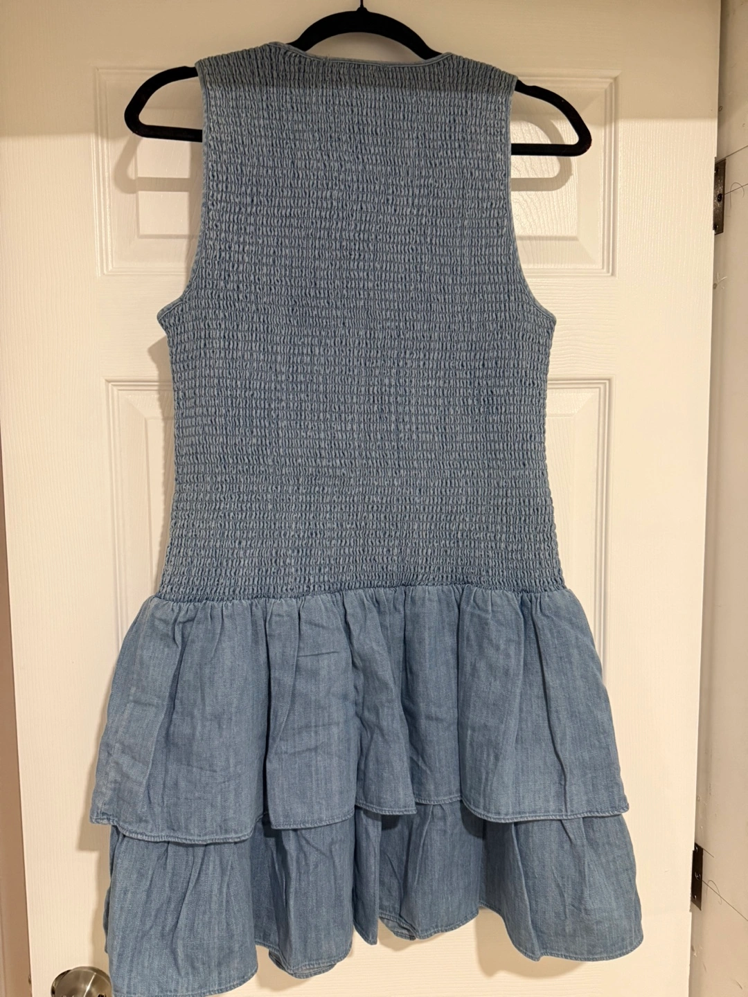 Selling a very stylish Michael Kors dress in size Large. It's a lovely light blue colour with a tiered ruffle skirt. The top is smocked for a comfortable fit. Originally bought for $250