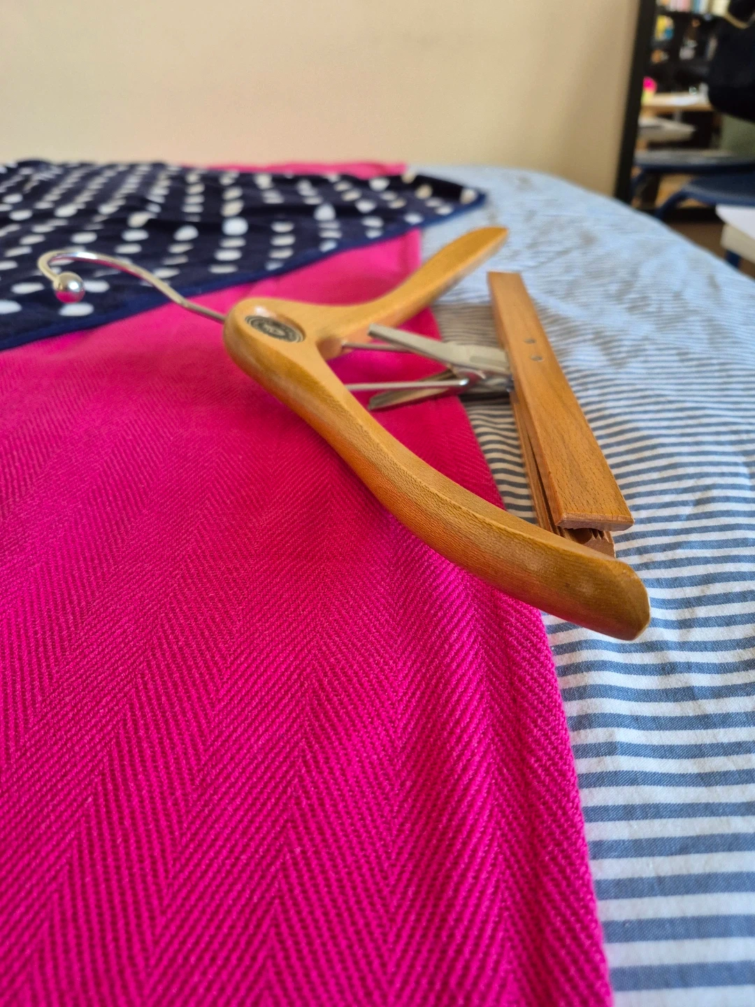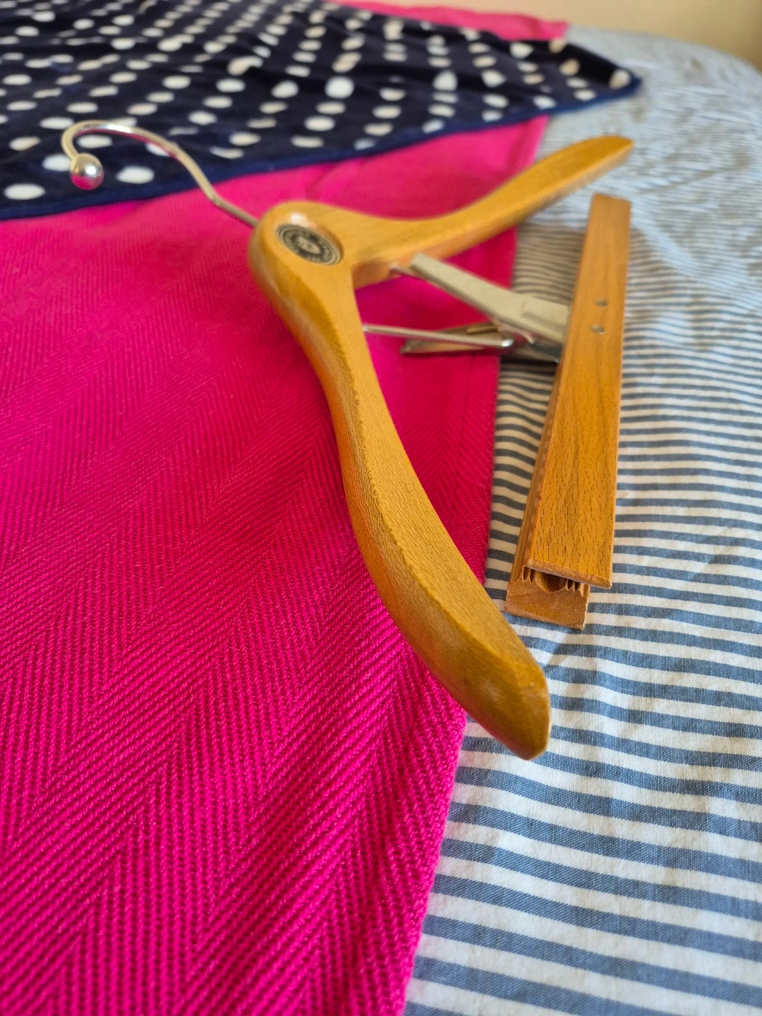 β Thicker, smoother wood and more sculpted than modern hangers.