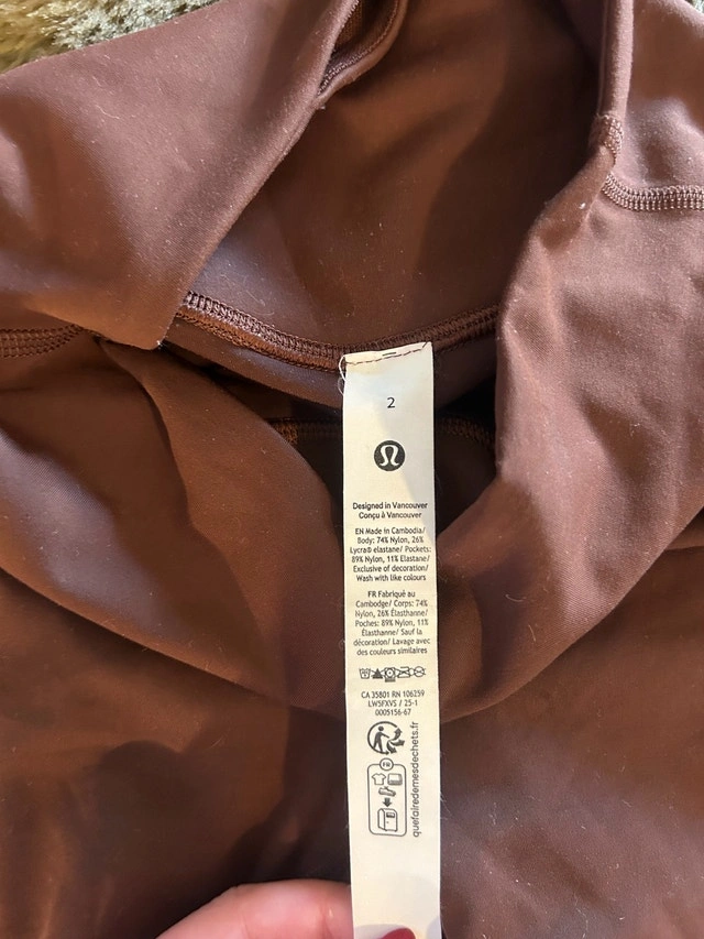 These are used brown Lululemon flared leggings in a size 2, perfect for yoga, workouts, or casual wear. They are in good condition, ready for a new home. Brand: Lululemon, Size: 2, Colour: Brown, Style: Flared Leggings. Cash accepted.