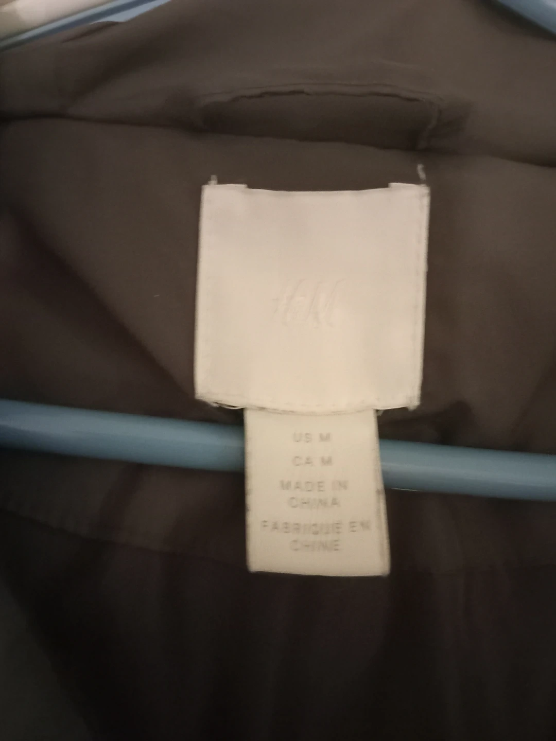 This is a long green puffer coat from H&M. It's a women's size medium with a hood. Made in China.
