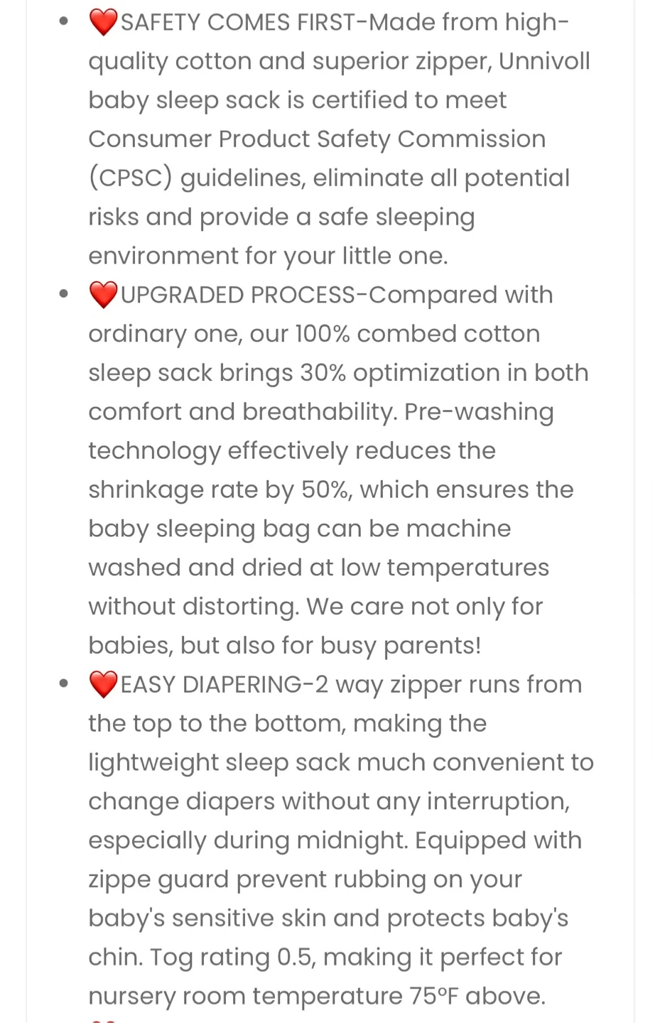 • TOG: 0.5 (lightweight – ideal for warmer temperatures)