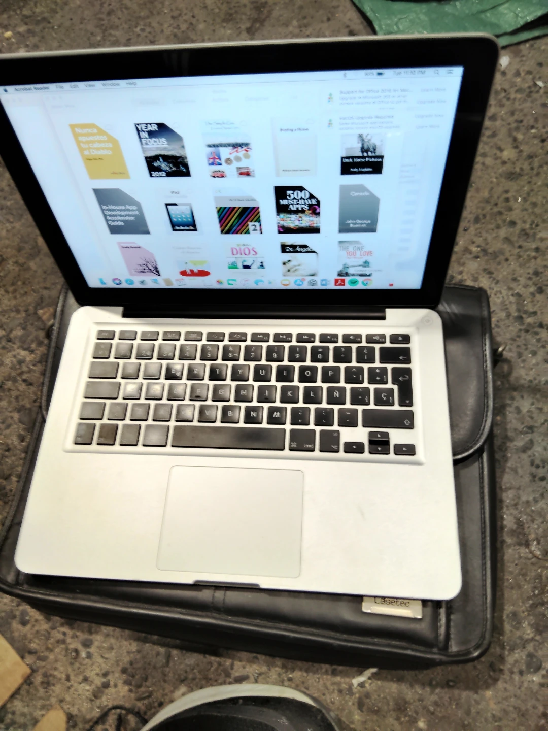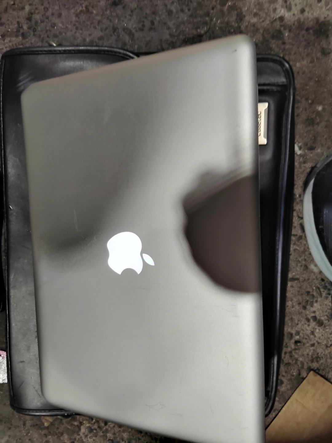 This is a 2012 Apple MacBook Pro 13-inch laptop. It's a silver aluminum casing with a black keyboard. It comes with a black laptop bag. Great for school or work!