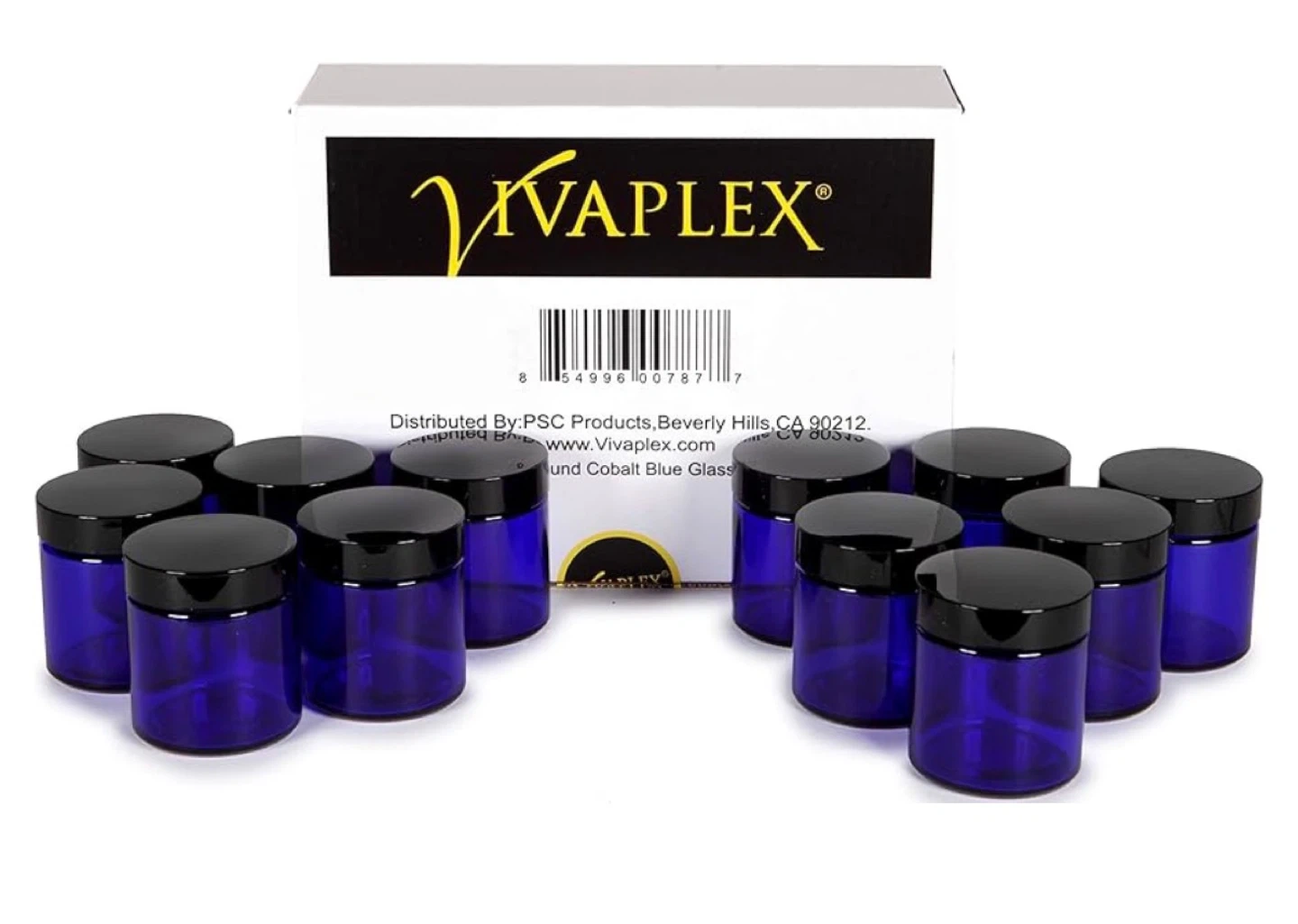 set of 12 Vivaplex cobalt blue glass jars.
