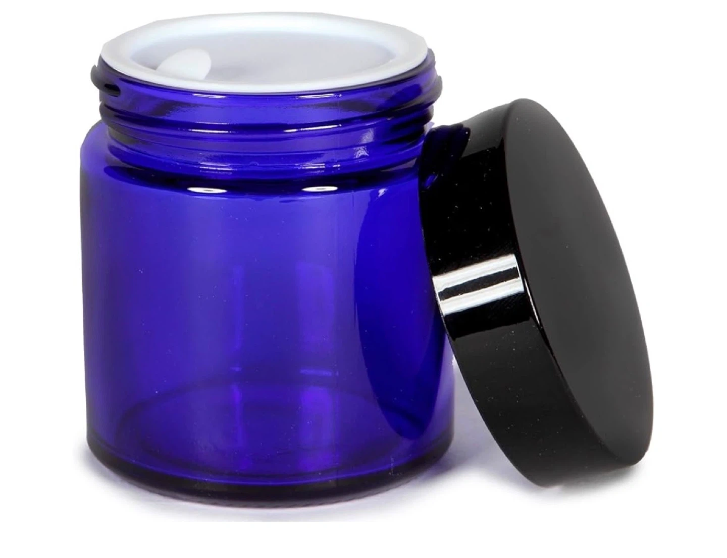 These blue glass containers are perfect for storing salves, lotions, or small craft items.