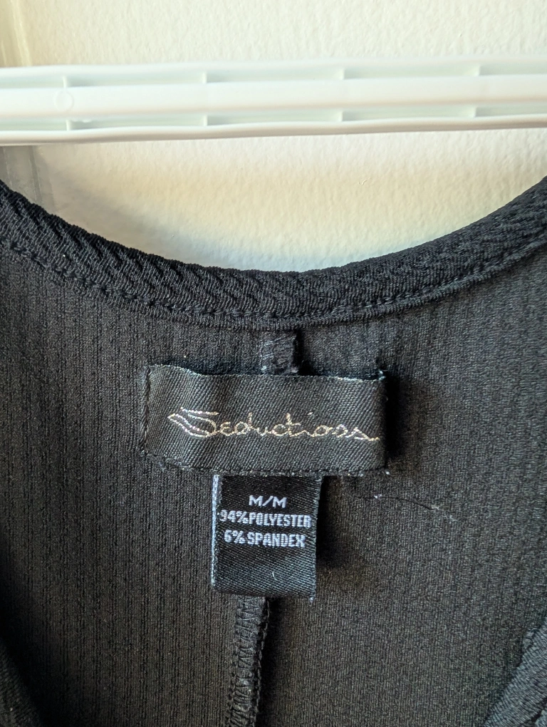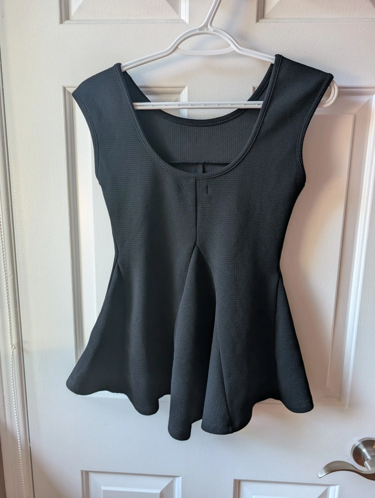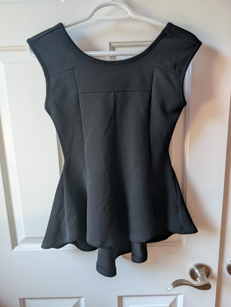 Selling a cute black peplum top from Seductions! It's a size M, it's comfy and stretchy.