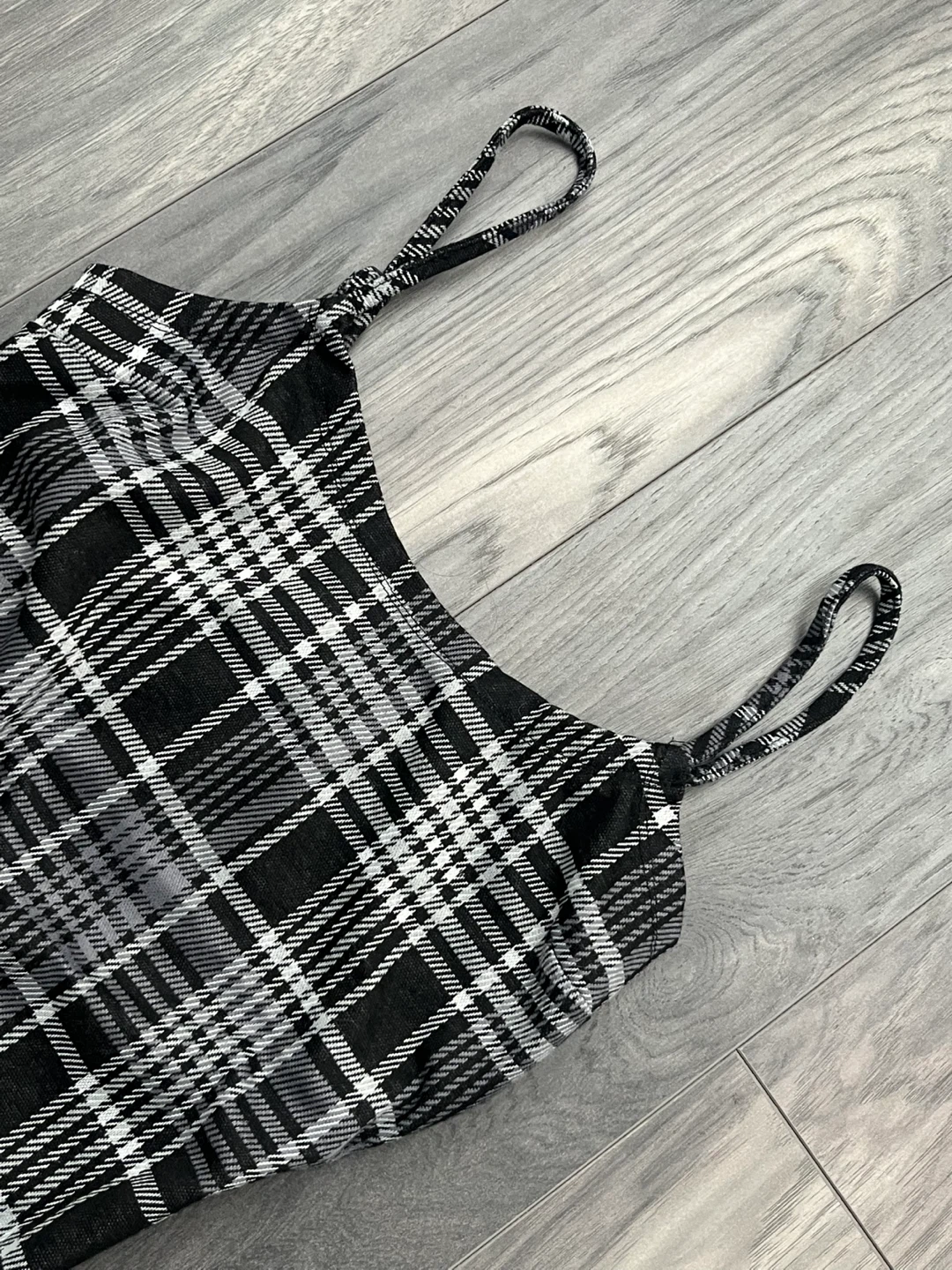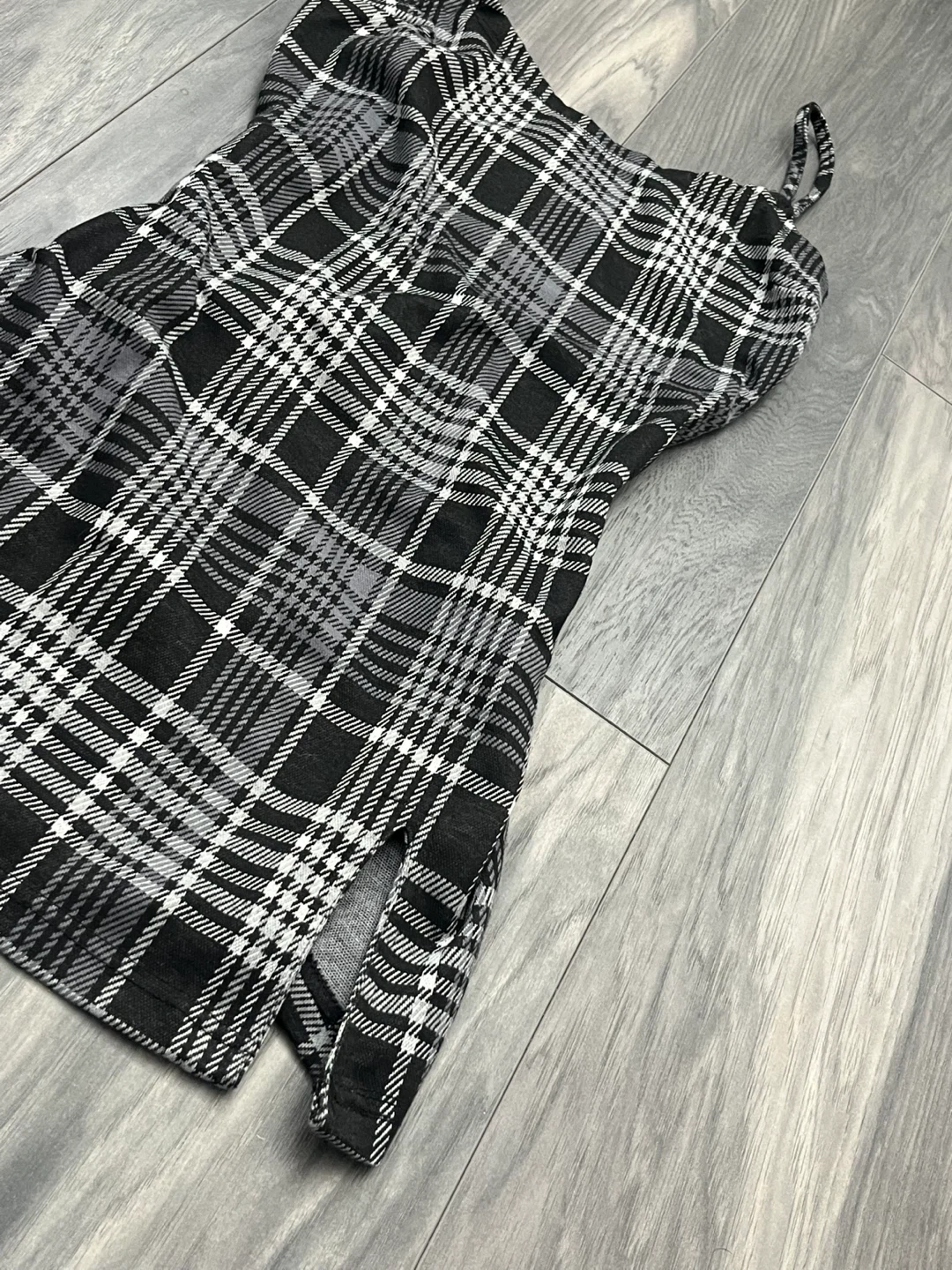 Black and grey fitted mini dress. Features small slit and adjustable straps to cater to your comfort. Cute and simple. No damage, like new.