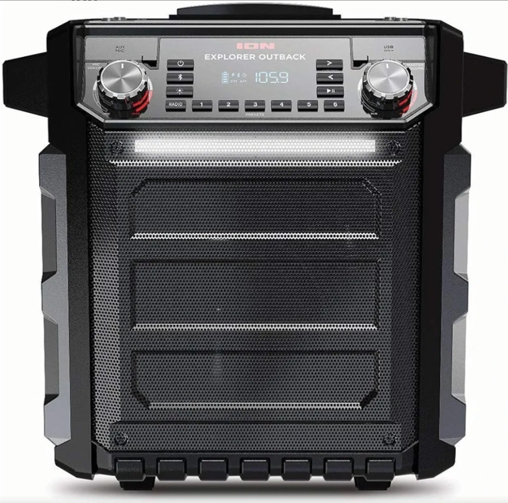 31Portable Bluetooth speaker. Durable, rugged construction. Wheels for easy transport. Multiple inputs and outputs. Great for outdoor use. It comes with a microphone. it works great. Only issue is that the battery doesn't work anymore so it has to be plugged in.