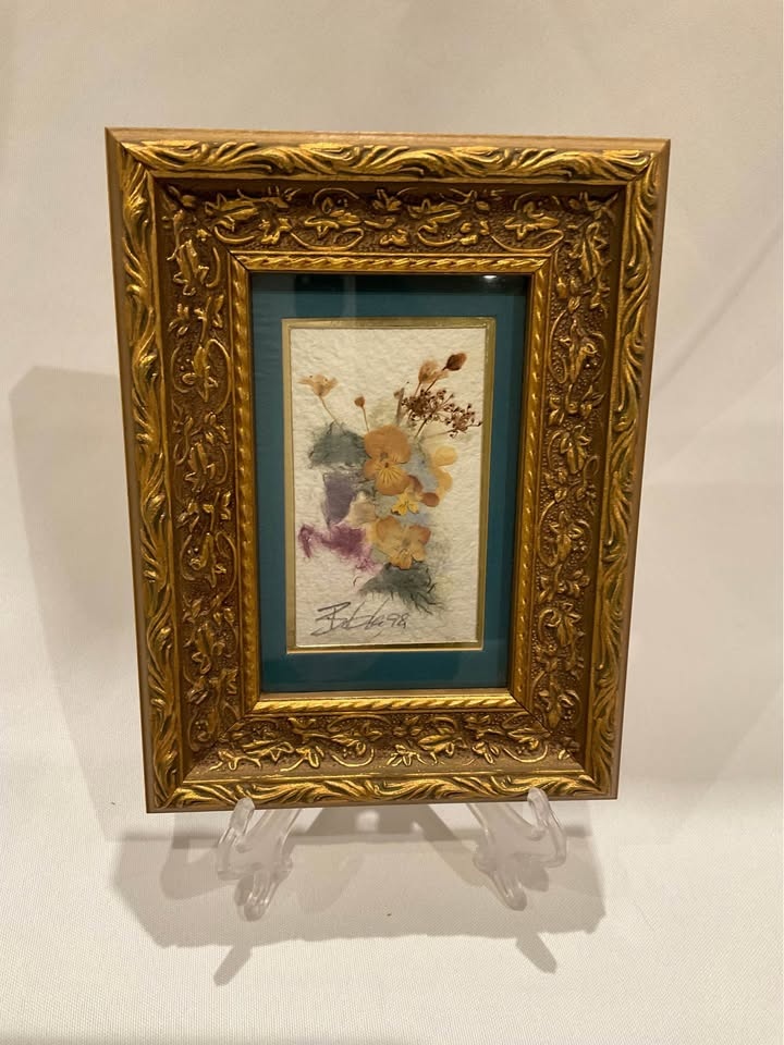 Original Ballfield Farm Signed by the Artist. Framed Little Jewel. Beautiful Pressed Wildflowers. Rare piece in great condition in a gorgeous frame. Measures 7 1/2 " x 5 1/2 ". From a smoke & pet free home. #193/200. Cash Only - Richmond Hill - Bathurst & King Rd.