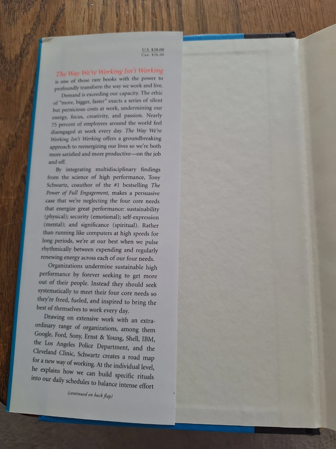 This book by Tony Schwartz explores the four forgotten needs that energize great performance. It offers practical strategies for individuals and organizations to re-energize their lives and work. Understand how to build a road map to balance intense effort and achieve sustainable high performance.