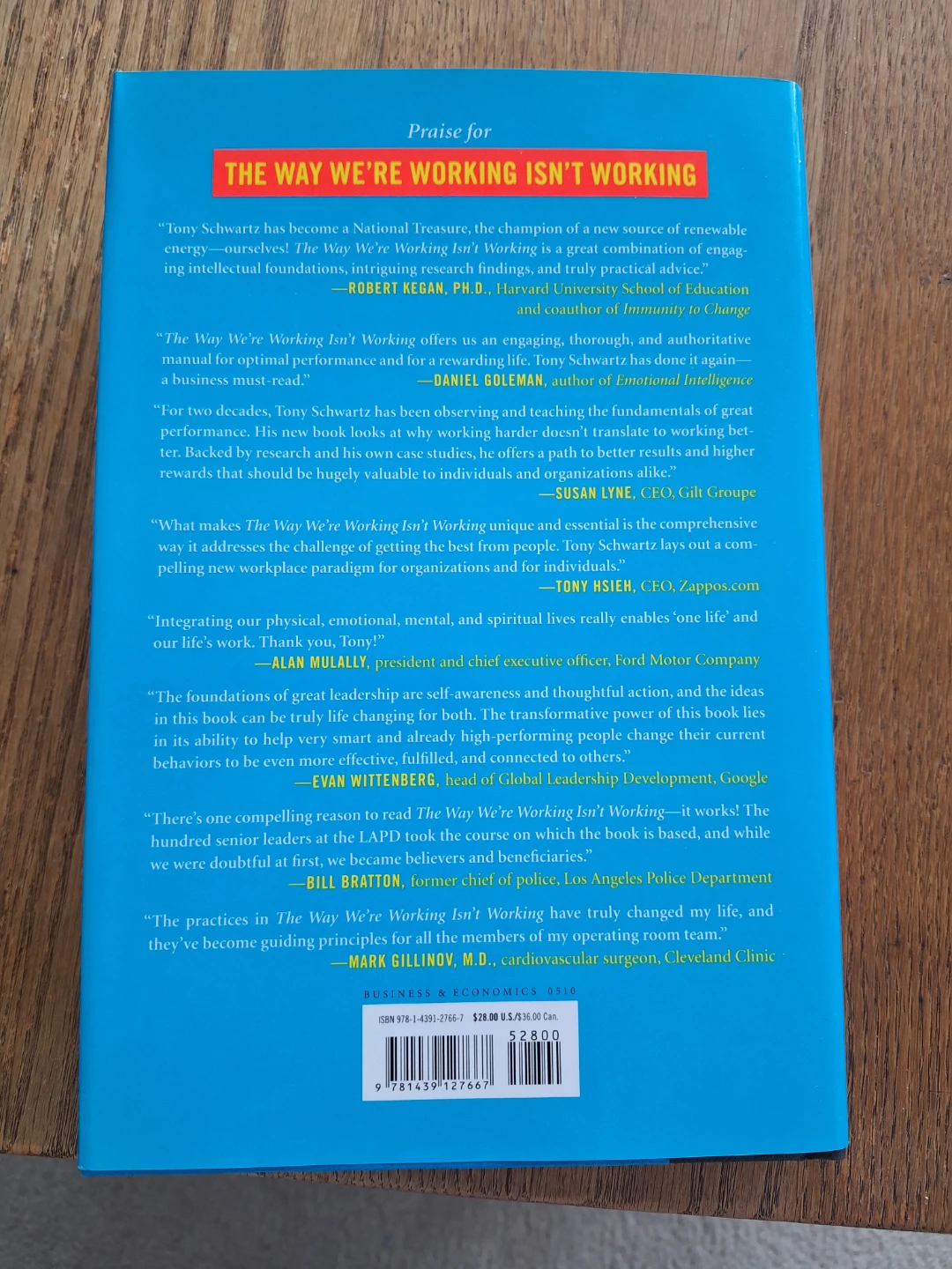 The Way We're Working Isn't Working Book by Tony Schwartz