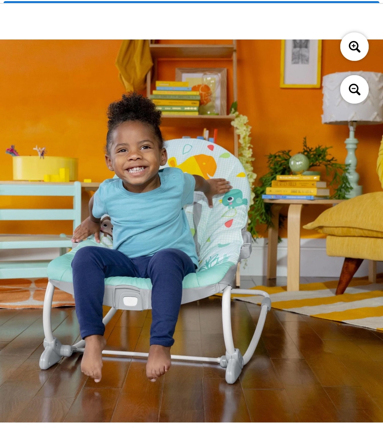 It’s a soothing safari for your wild child with the Wild Vibes 2-in-1 rocker and stationary seat from Bright Starts.