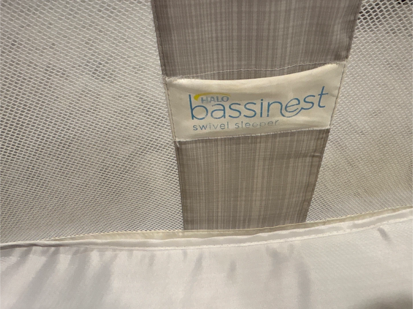 This Halo Bassinest Swivel Sleeper provides a safe and convenient space for your infant. It features a breathable mesh siding and a rotating arm for easy access. Includes a storage pocket on the side.