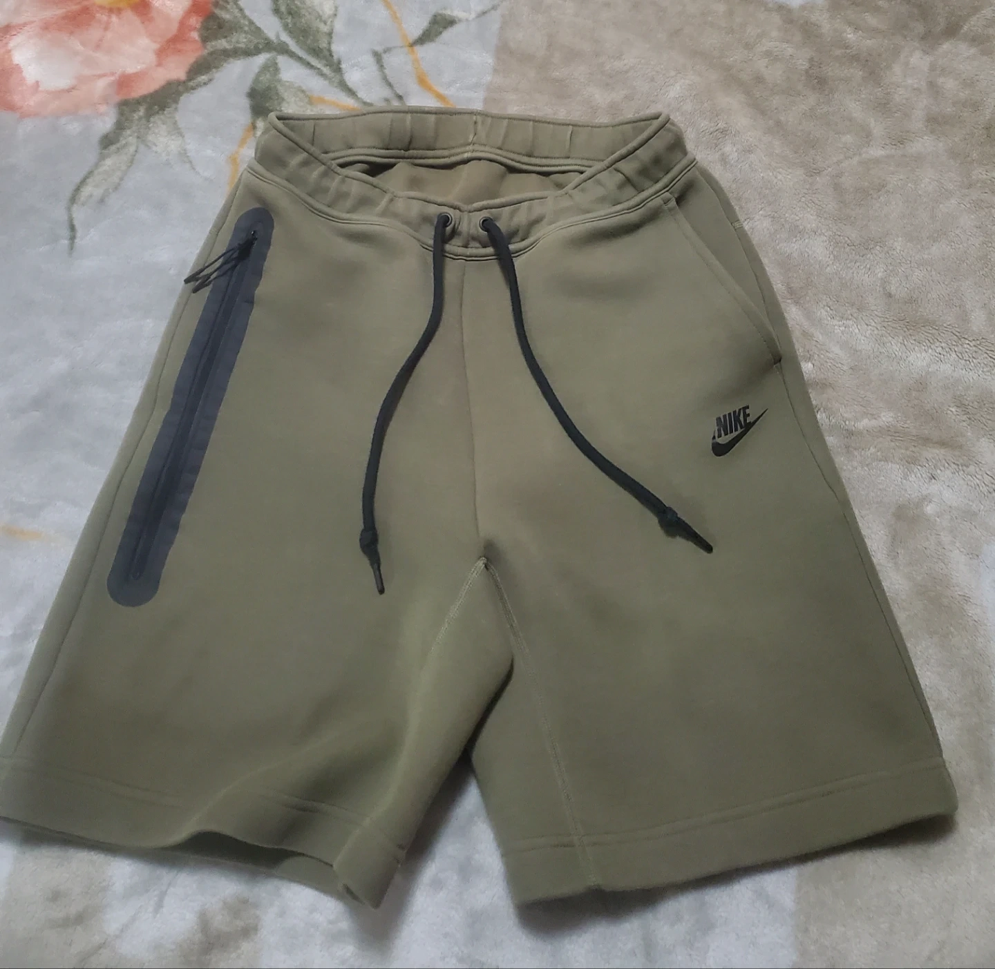 Selling a pair of Nike Tech Fleece shorts in size small. They are in great condition and feature a comfortable fit with a drawstring waist. Perfect for workouts or casual wear!