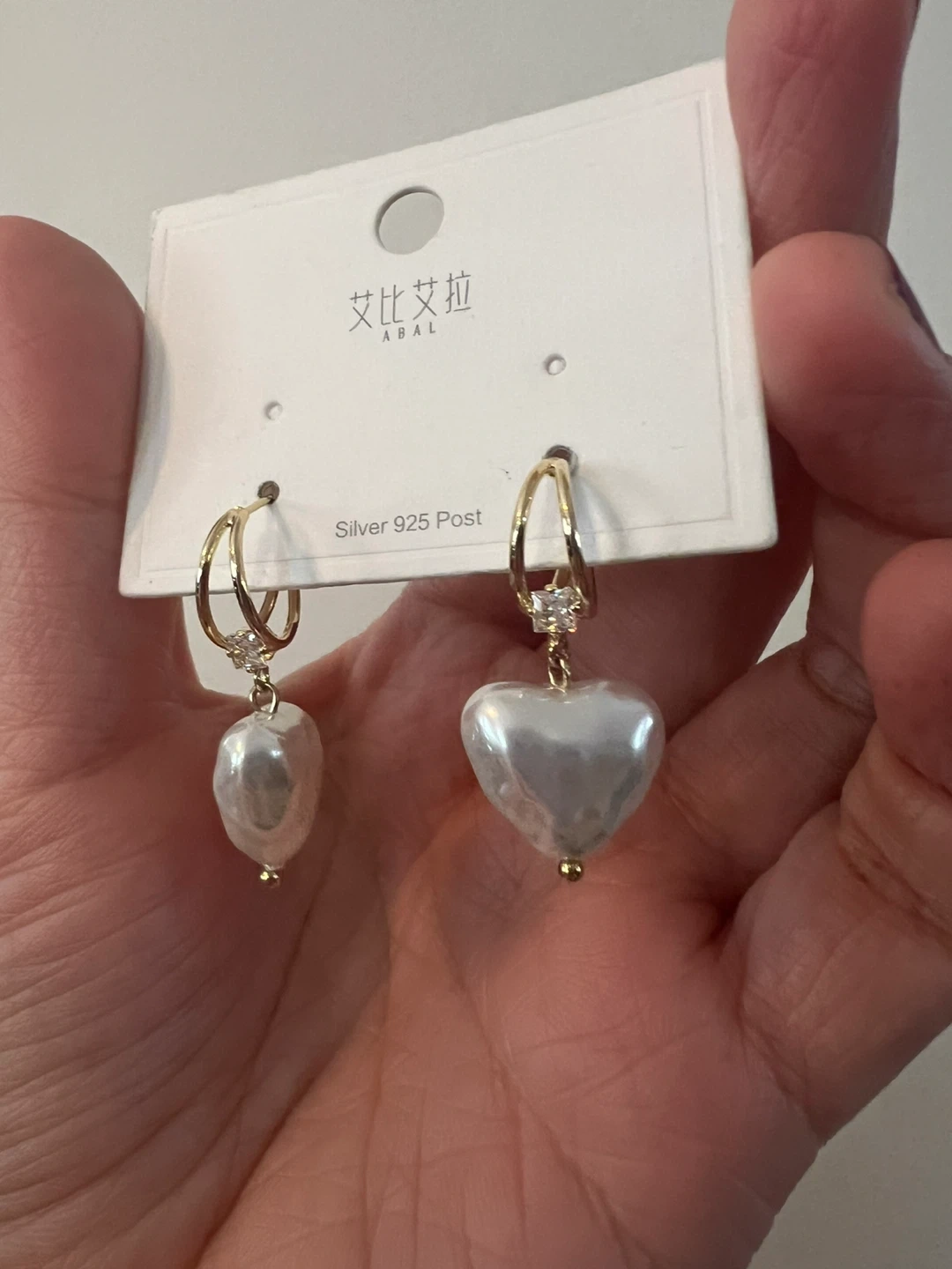 These elegant earrings from Abal feature a heart-shaped pearl drop and a baroque pearl drop. The posts are made of Sterling Silver 925. They're a lovely addition to any jewelry collection!