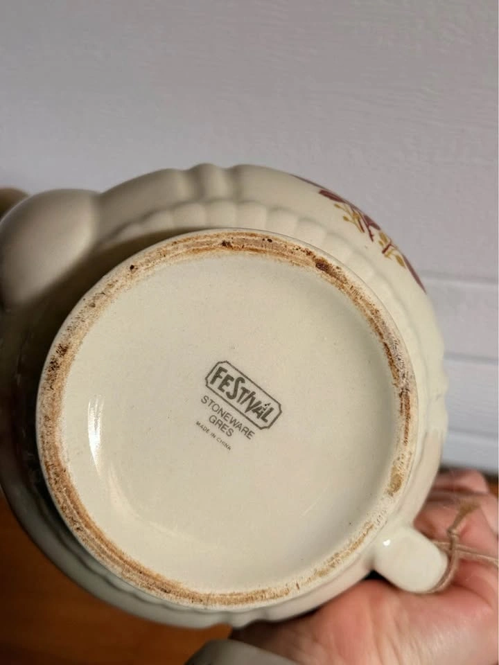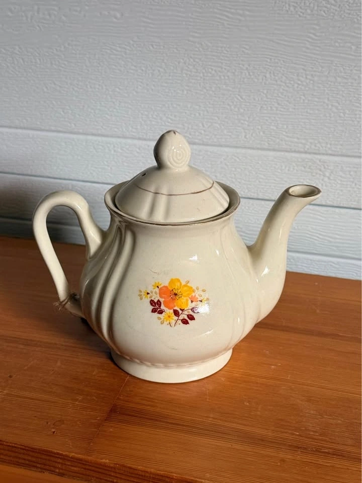 Vintage Stoneware Floral Teapot