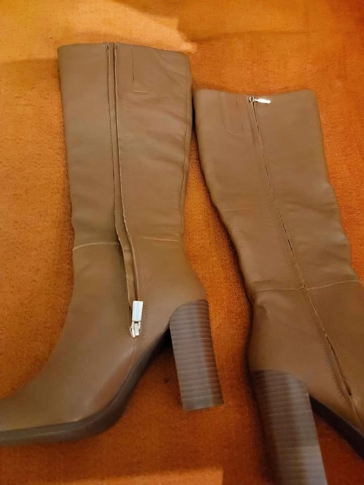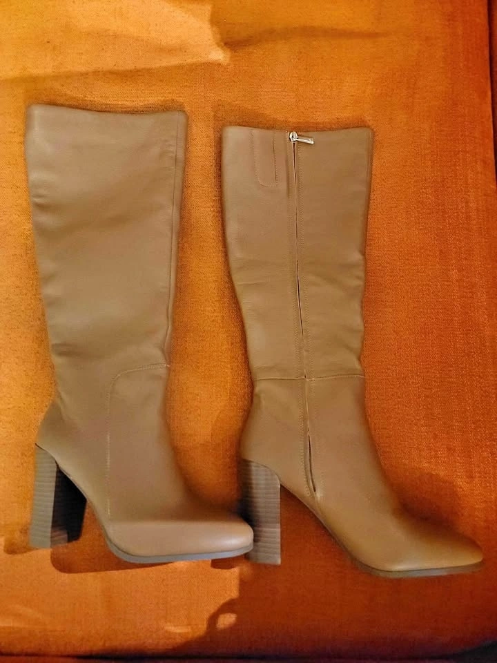 Brand new without box, Kenneth Cole Knee High Leather Boots size 8.5/39.5. Pebble grain leather finish in cognac brown. Medium width boot in "Justin" style. Heel height is 3 inches. Pickup at CityPlace downtown. Etransfer preferred.