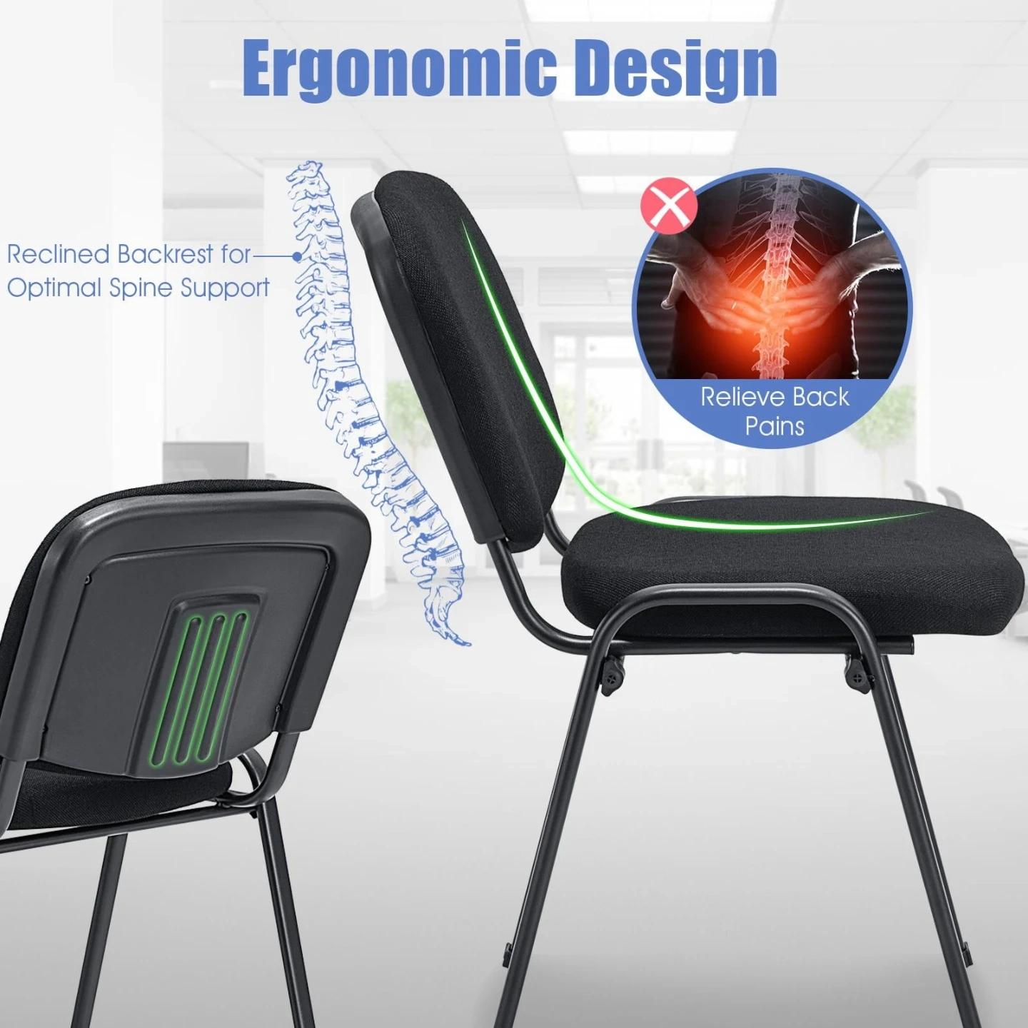New Black Stackable Conference Chairs (Set of 5)