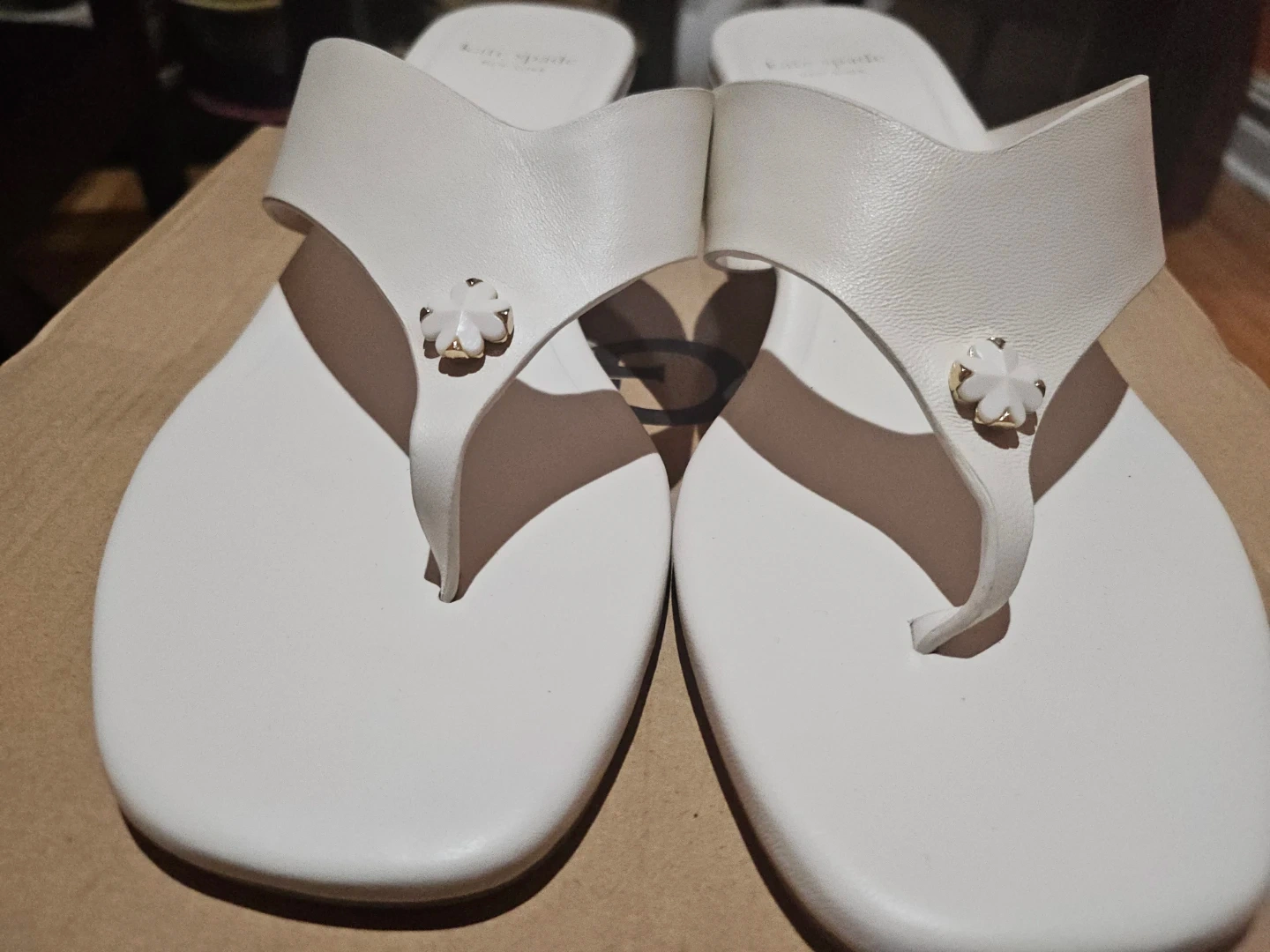 Kate Spade New York White Thong Sandals with Flower Accent