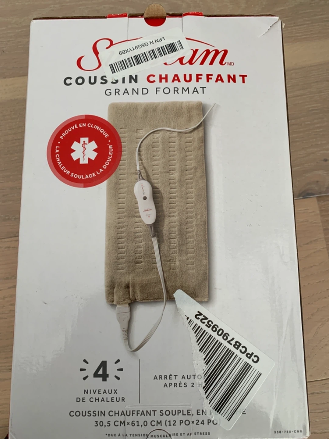Sunbeam large heating pad with 4 heat settings. It's clinically proven to relieve pain and has a 2-hour auto-shutoff feature. The pad measures 30.5 cm x 61.0 cm.