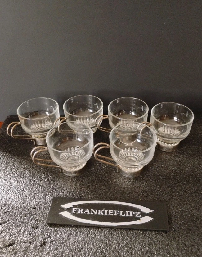 Buy & SellSet of 6 Glass Espresso Cups with Silver HandlesSet of 6 Glass Espresso Cups with Silver Handles$756 " Vintage " Glass Italian Espresso Cups clear ( Made in Italy )ConditionGoodWHERE TO MEETHaggler's Flea MarketView MapSELLERverifiedFrankieflipzGilbert750 reviews0 chats·0 favorites·6 viewsSEND CHAT TO SELLERHi Frankieflipz! I’m interested in your listing.Hi Frankieflipz! I’m interested in your listing.Get the Karrot app to chatSign In to chat