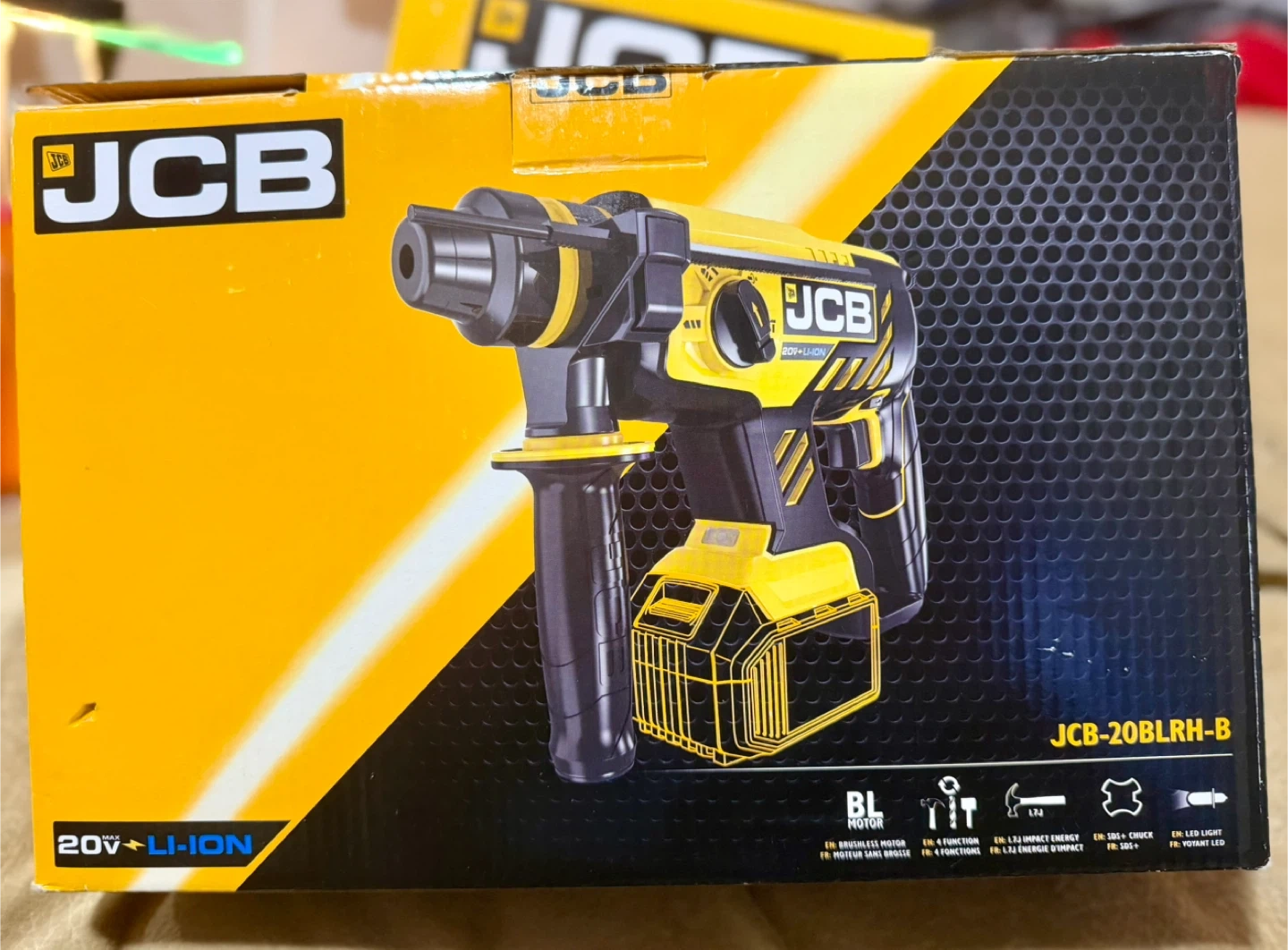 Selling a brand new JCB-20BLRH-B 20V LI-ION rotary hammer drill, still in its original box! This powerful tool features a brushless motor and delivers 1.7J of impact energy. It also has an LED light for better visibility. Perfect for various drilling and hammering tasks